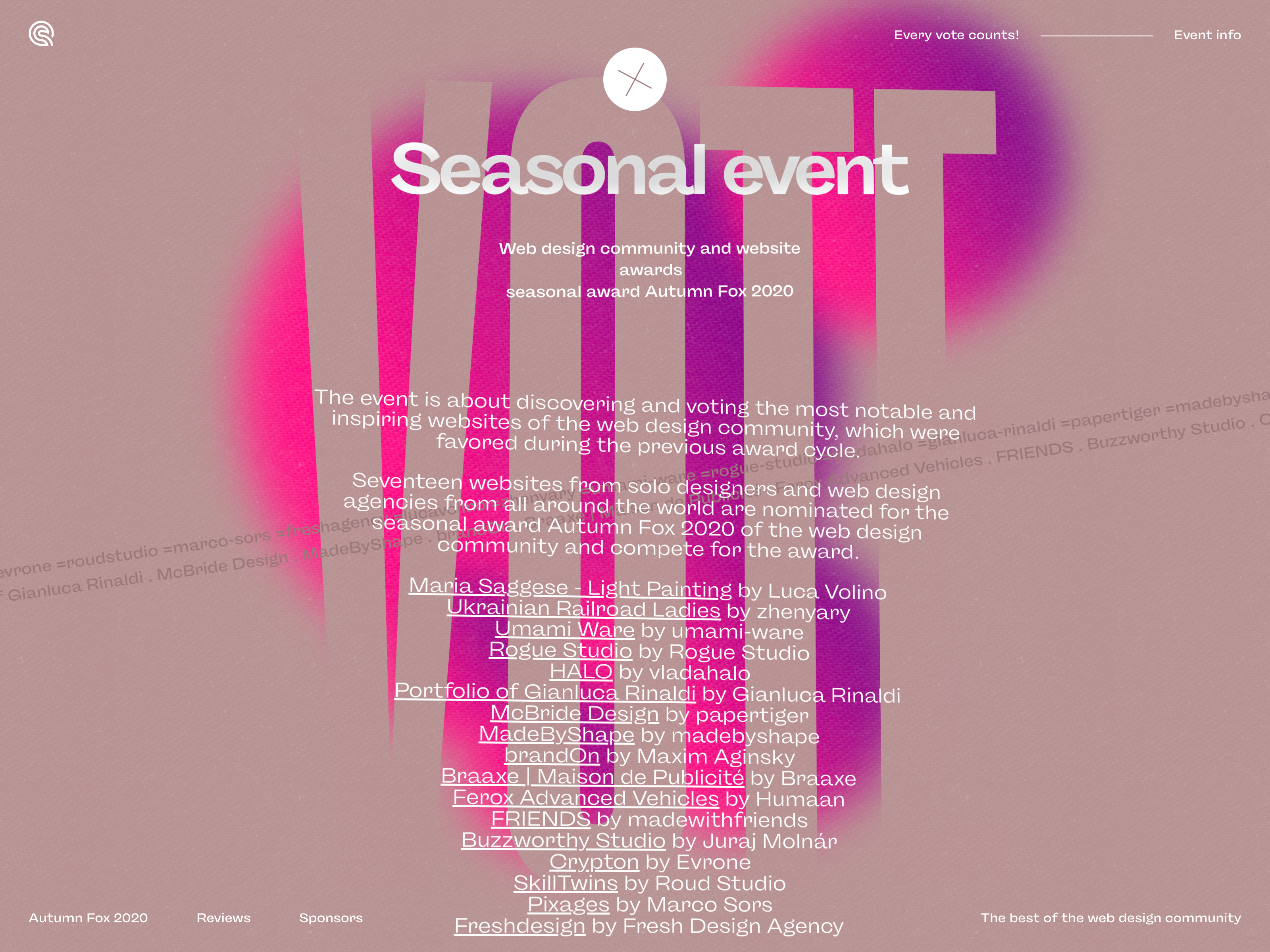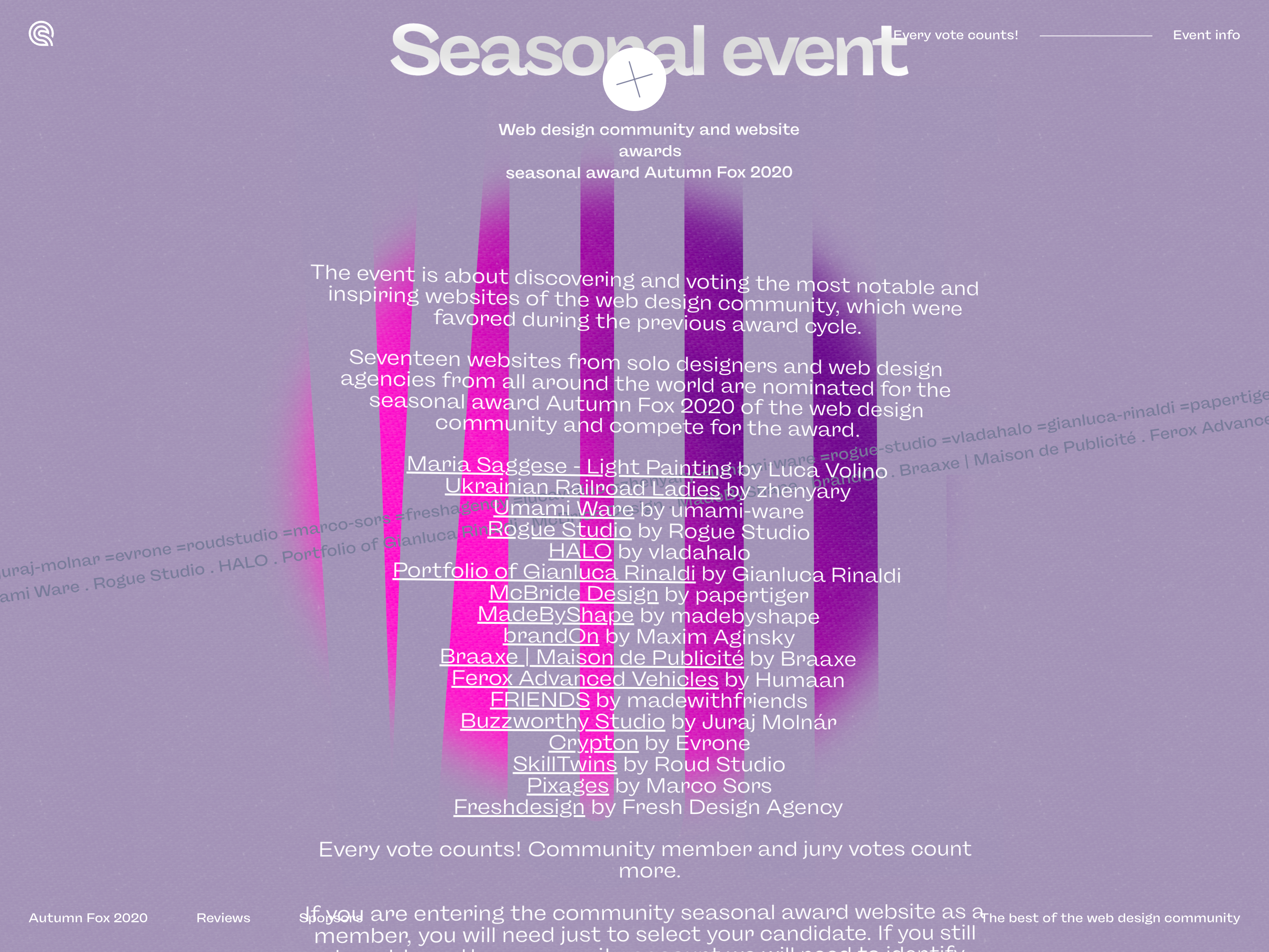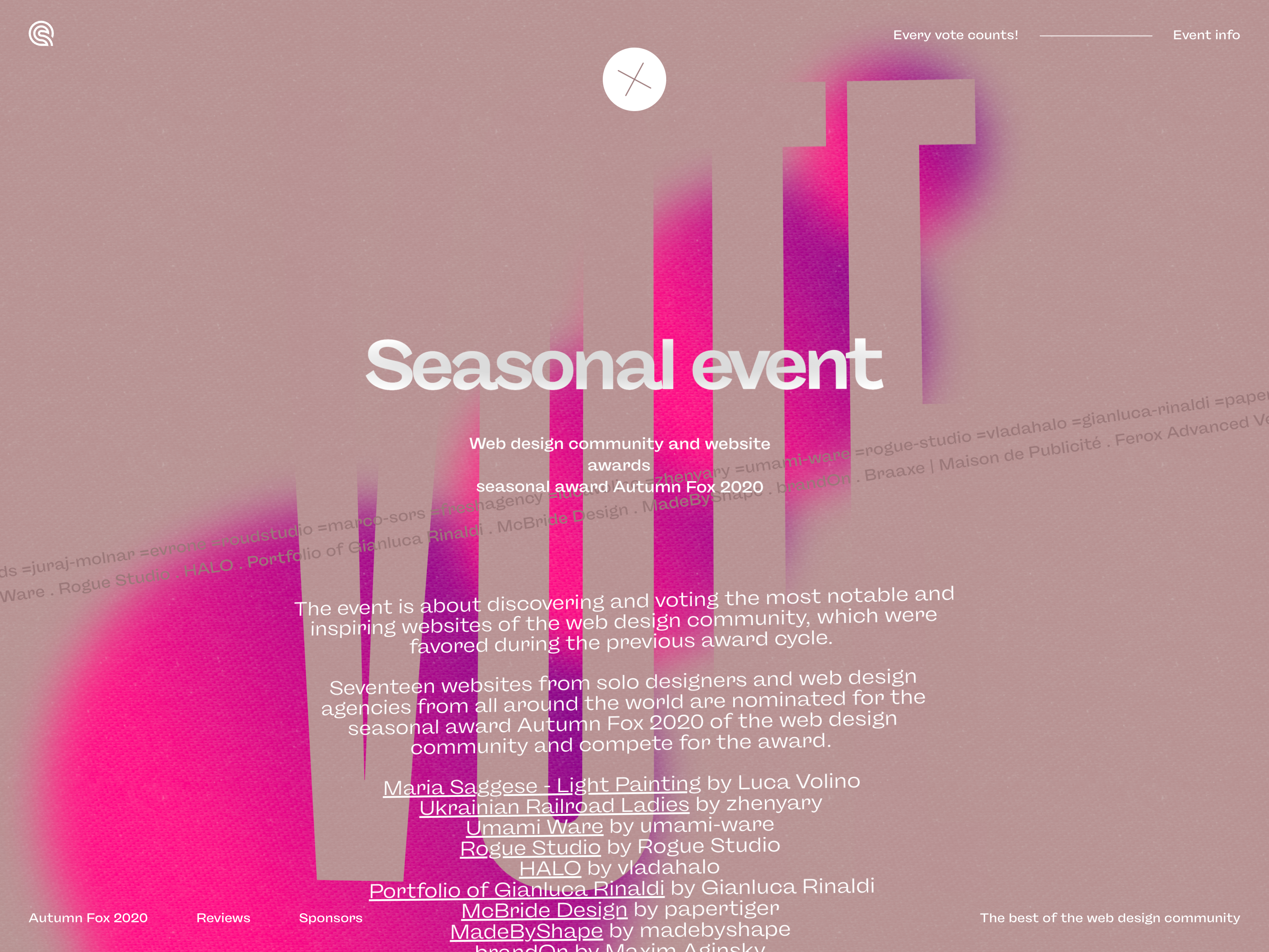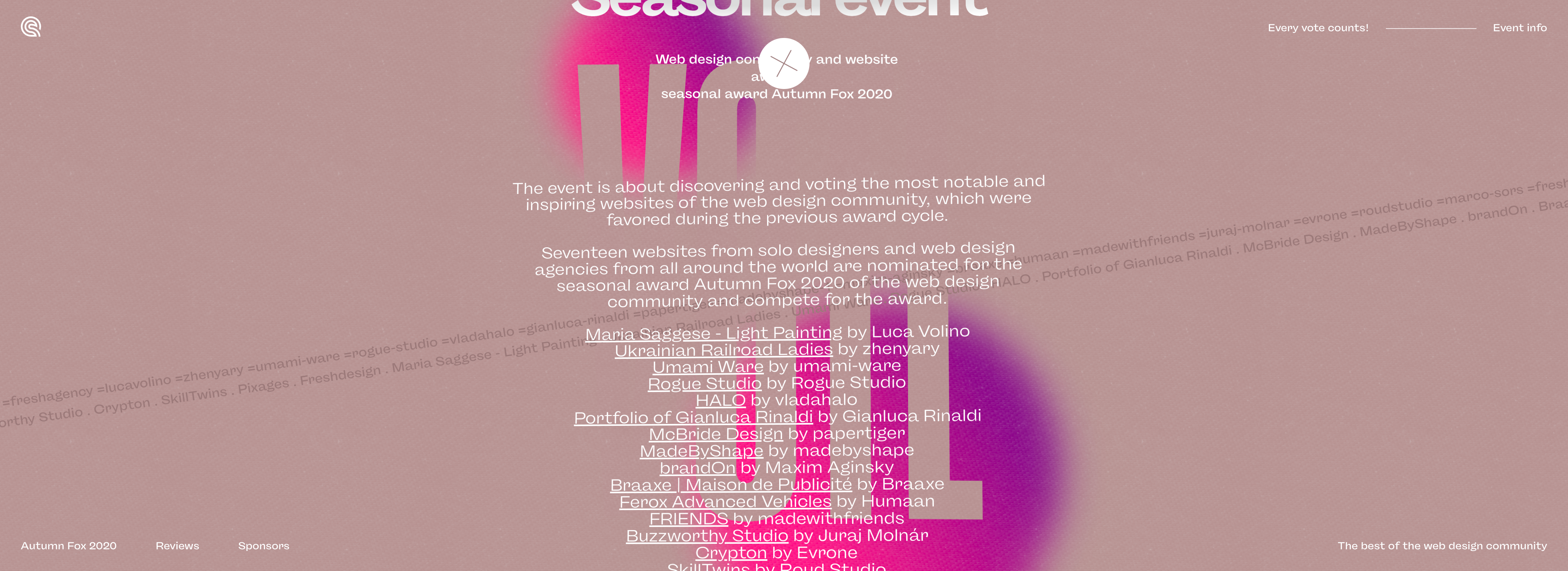 Seventeen websites from solo designers and web design agencies worldwide have been nominated for the seasonal award Autumn Fox 2020 by the web design community and have competed for the award.
