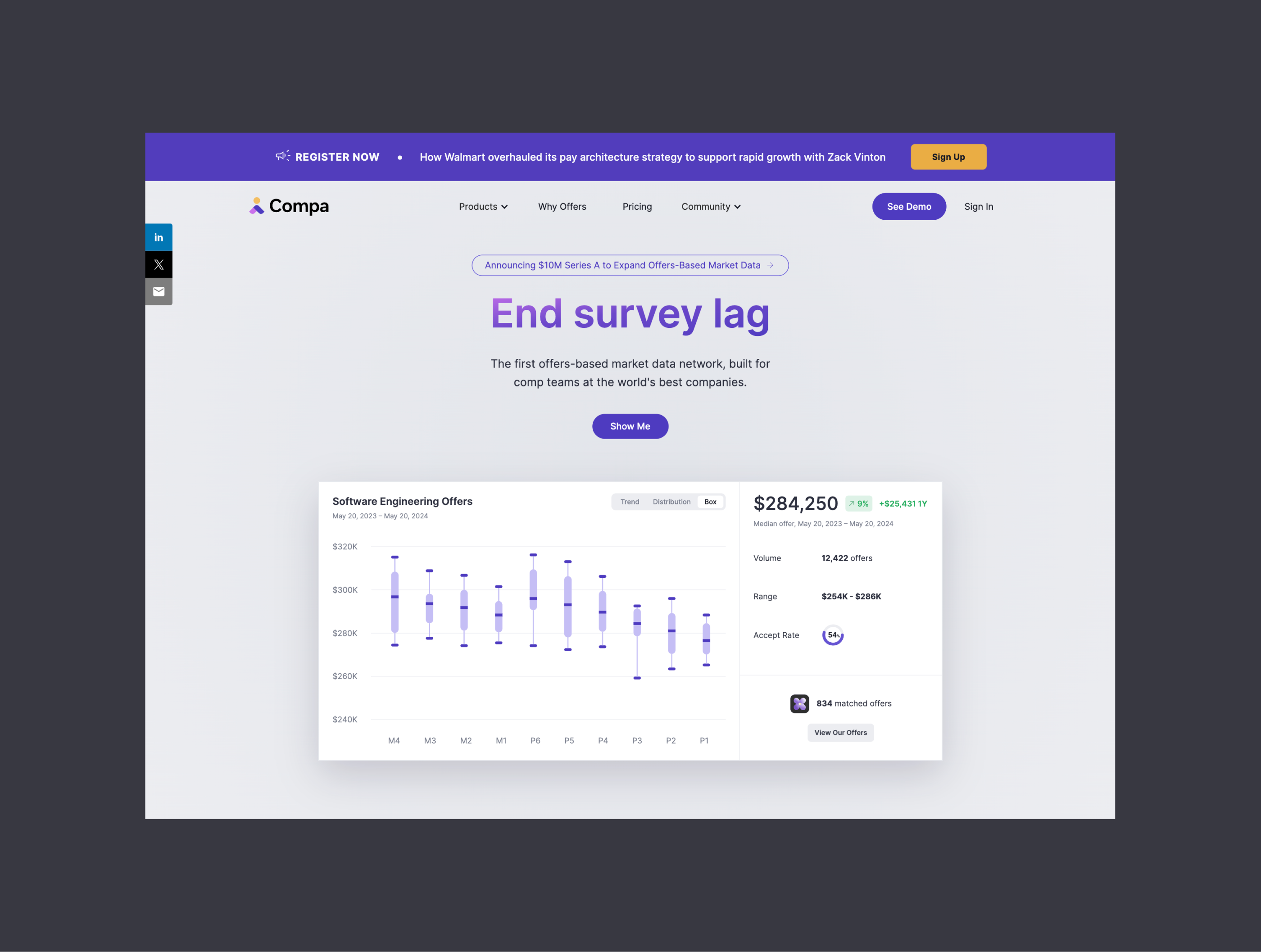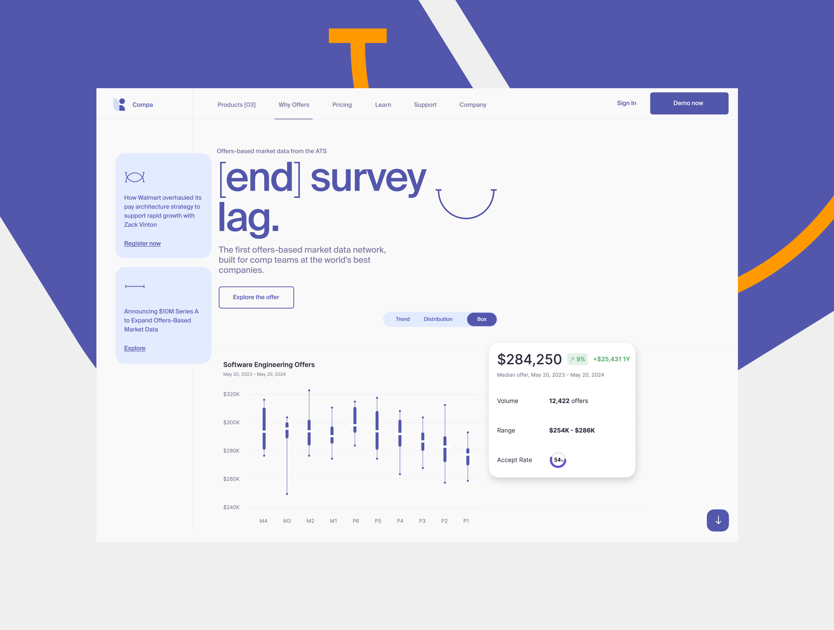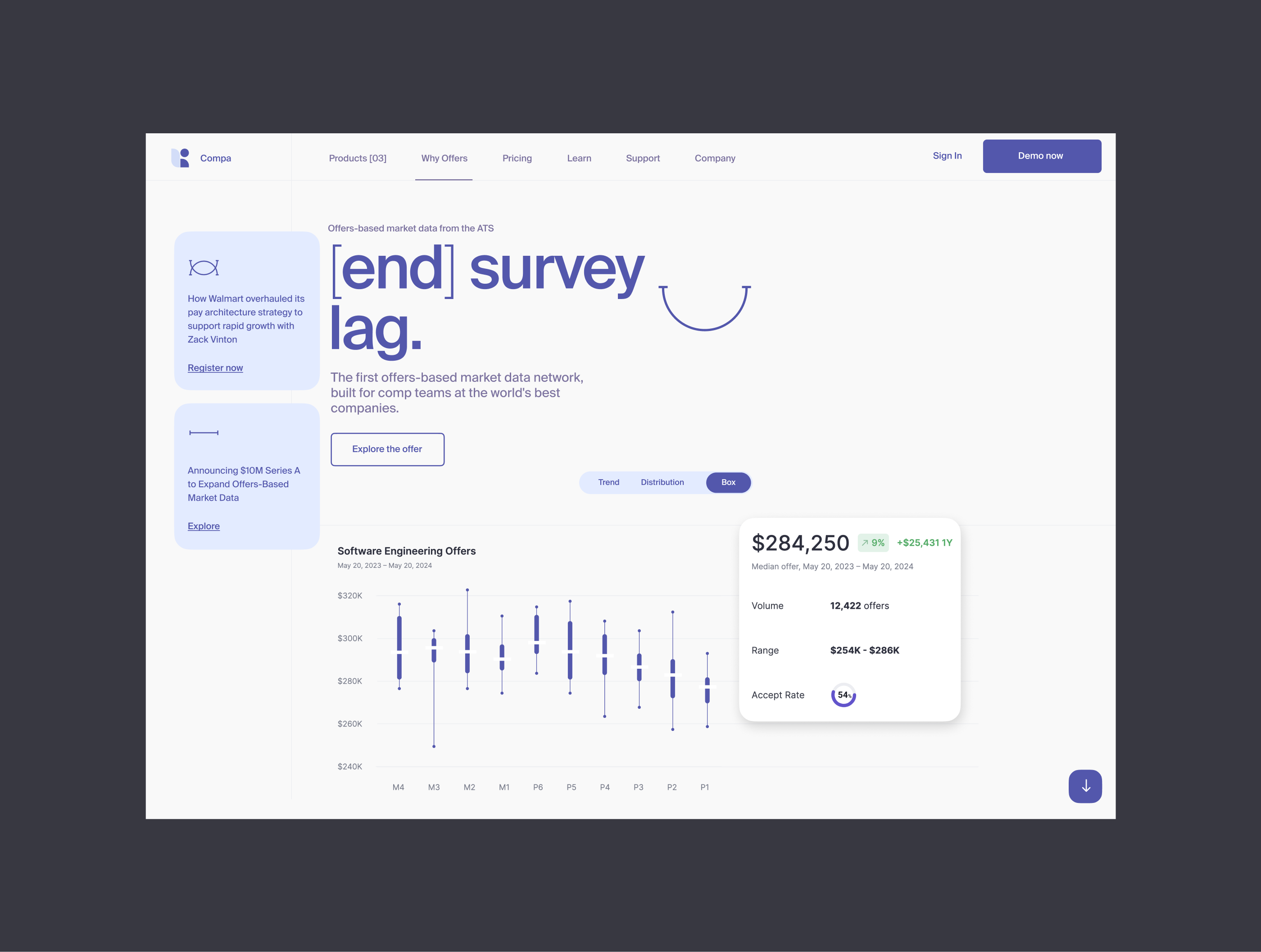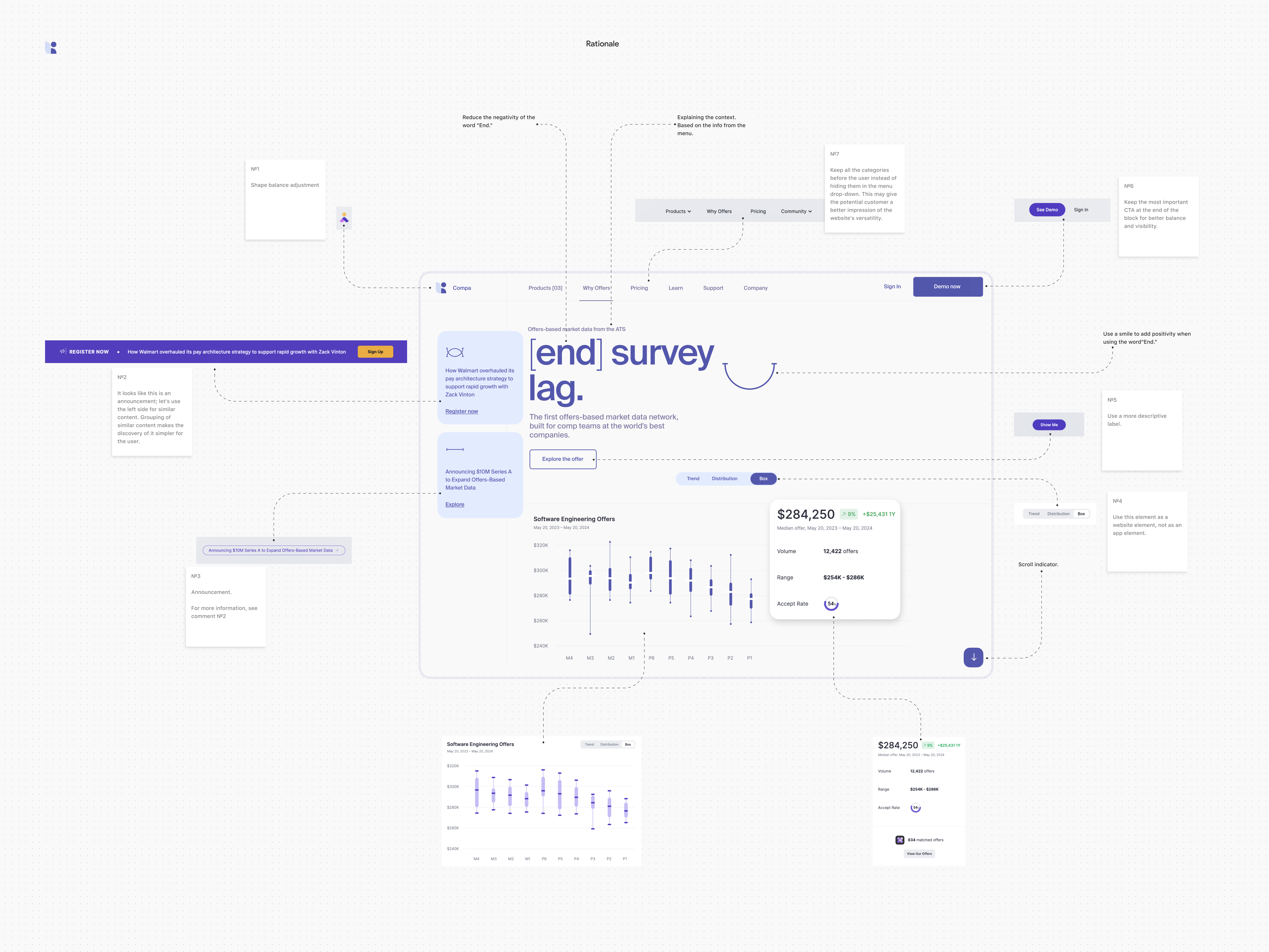 Detailed analysis of the information design/hierarchy, layout, and styles of the Compa website landing page. The new version uses a low-contrast color theme to enhance information readability.