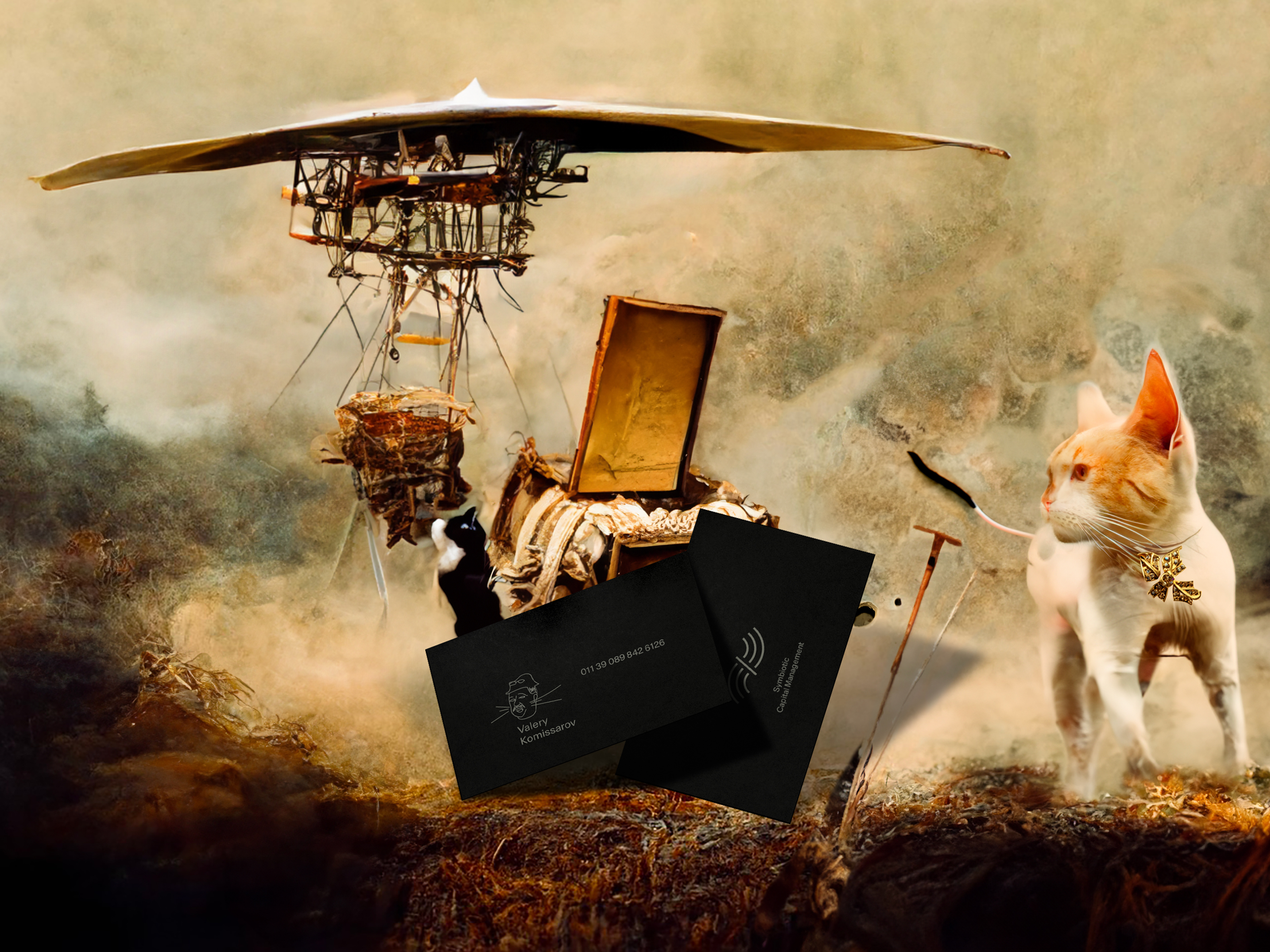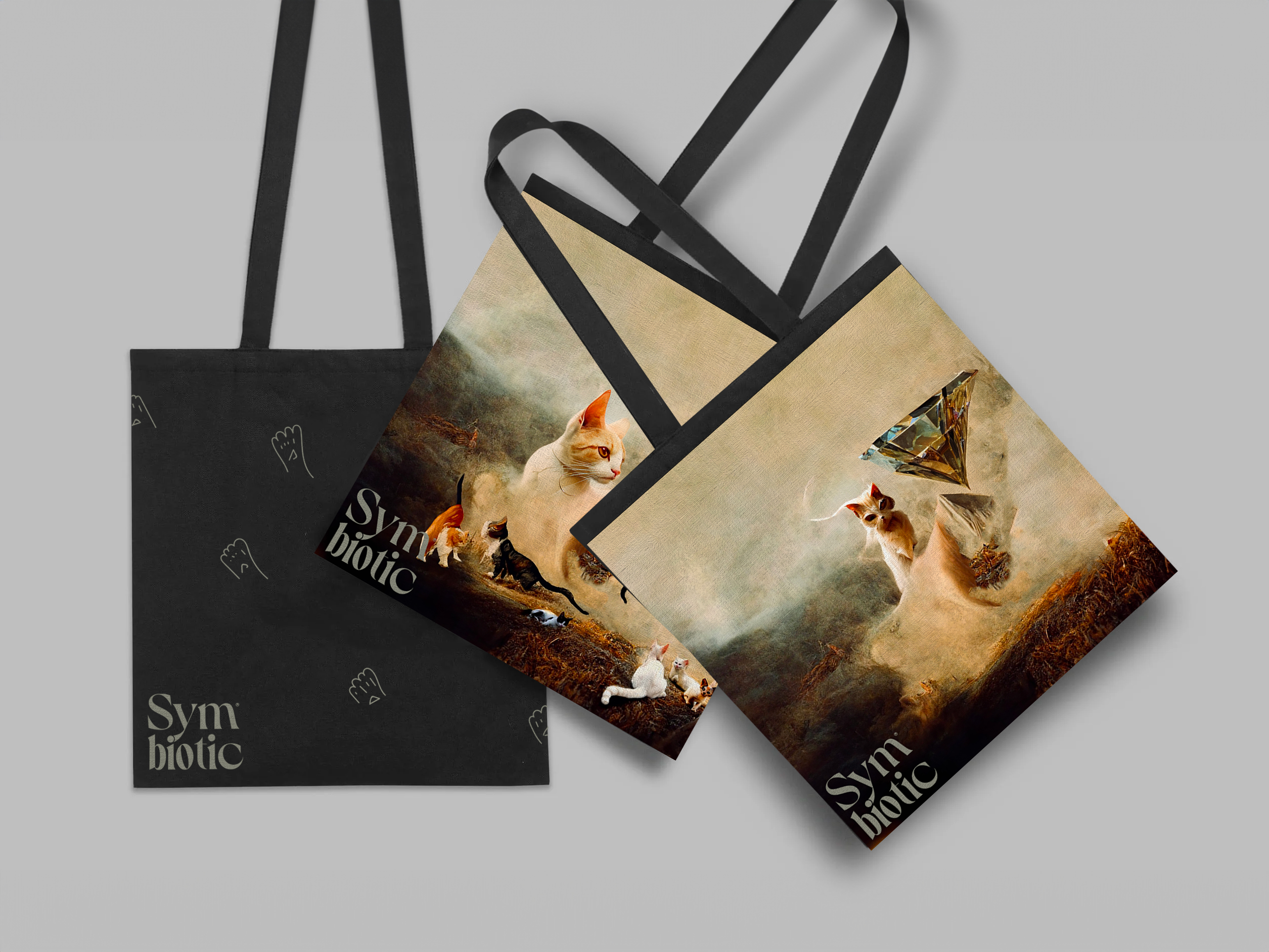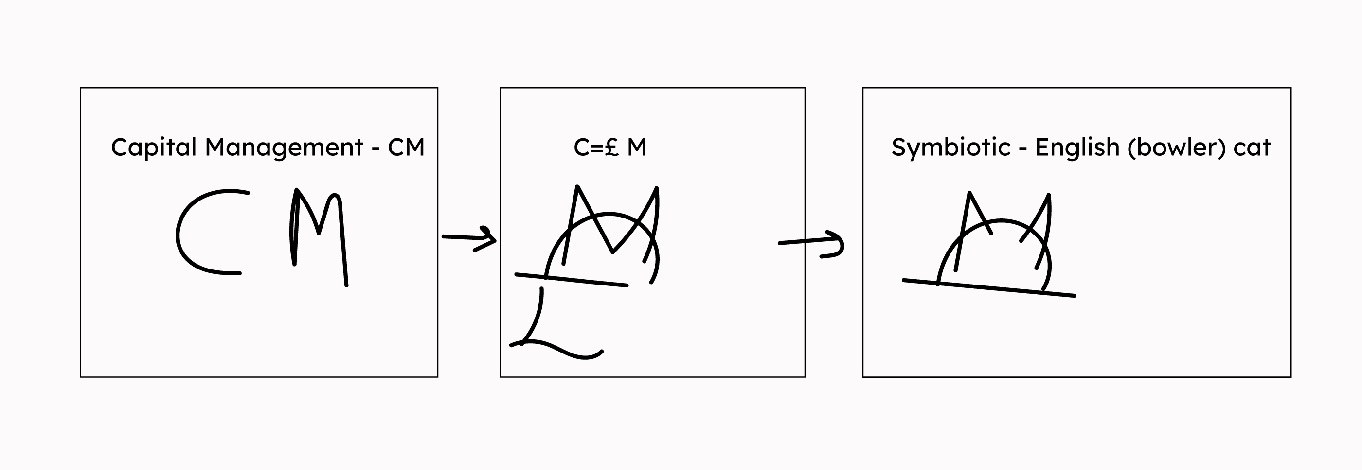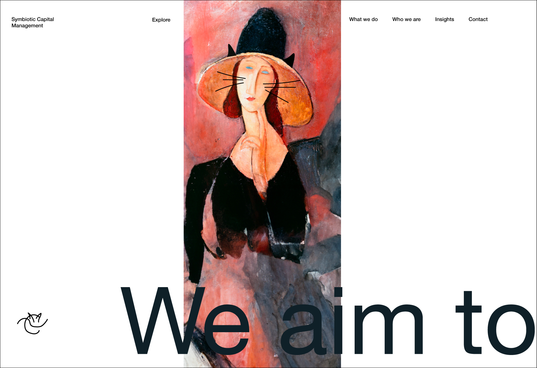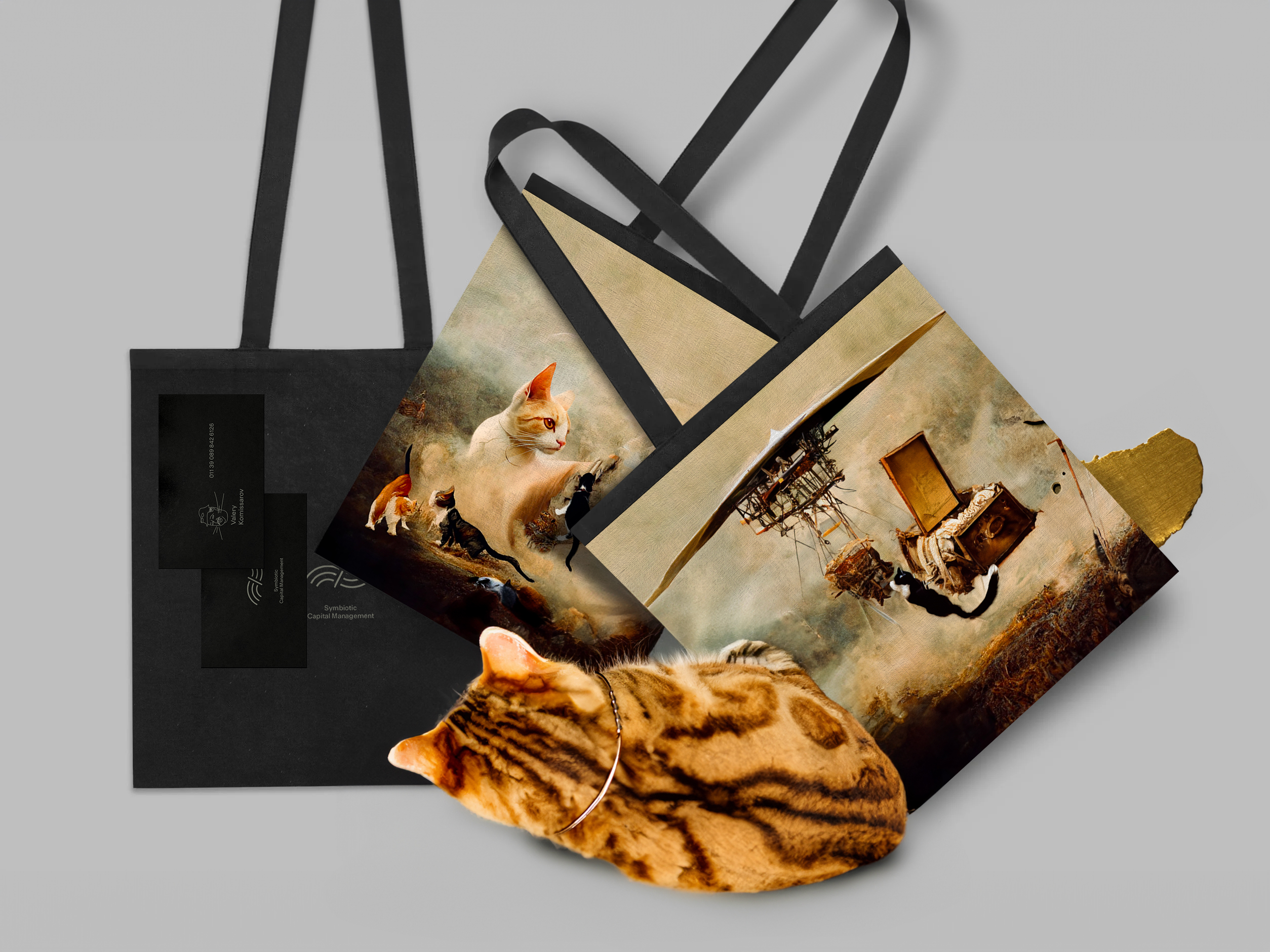 The system is becoming more complex. If, at the start, we had the cat as a symbol and art as well, now it's two different autonomous organisms: logomark (symbiotic-general concept) and art (something + the cat element-art direction).