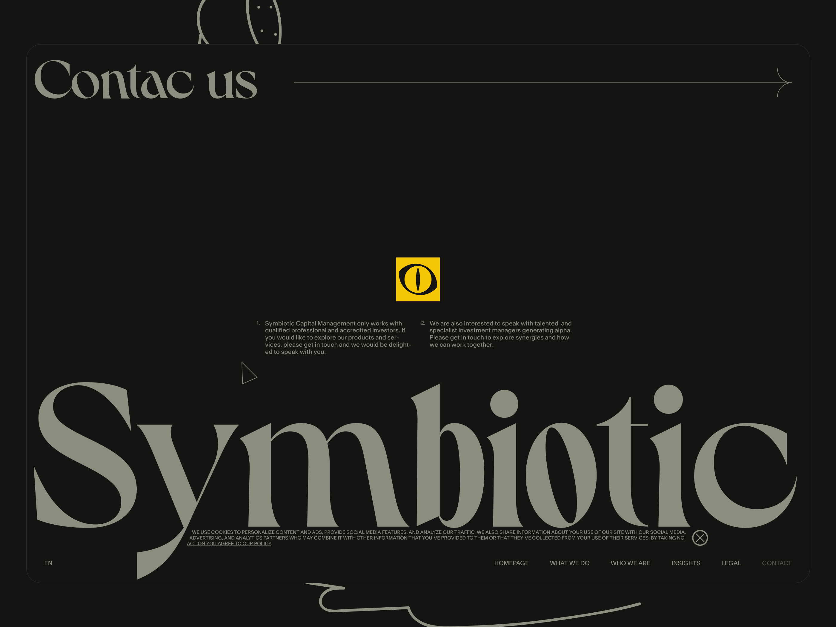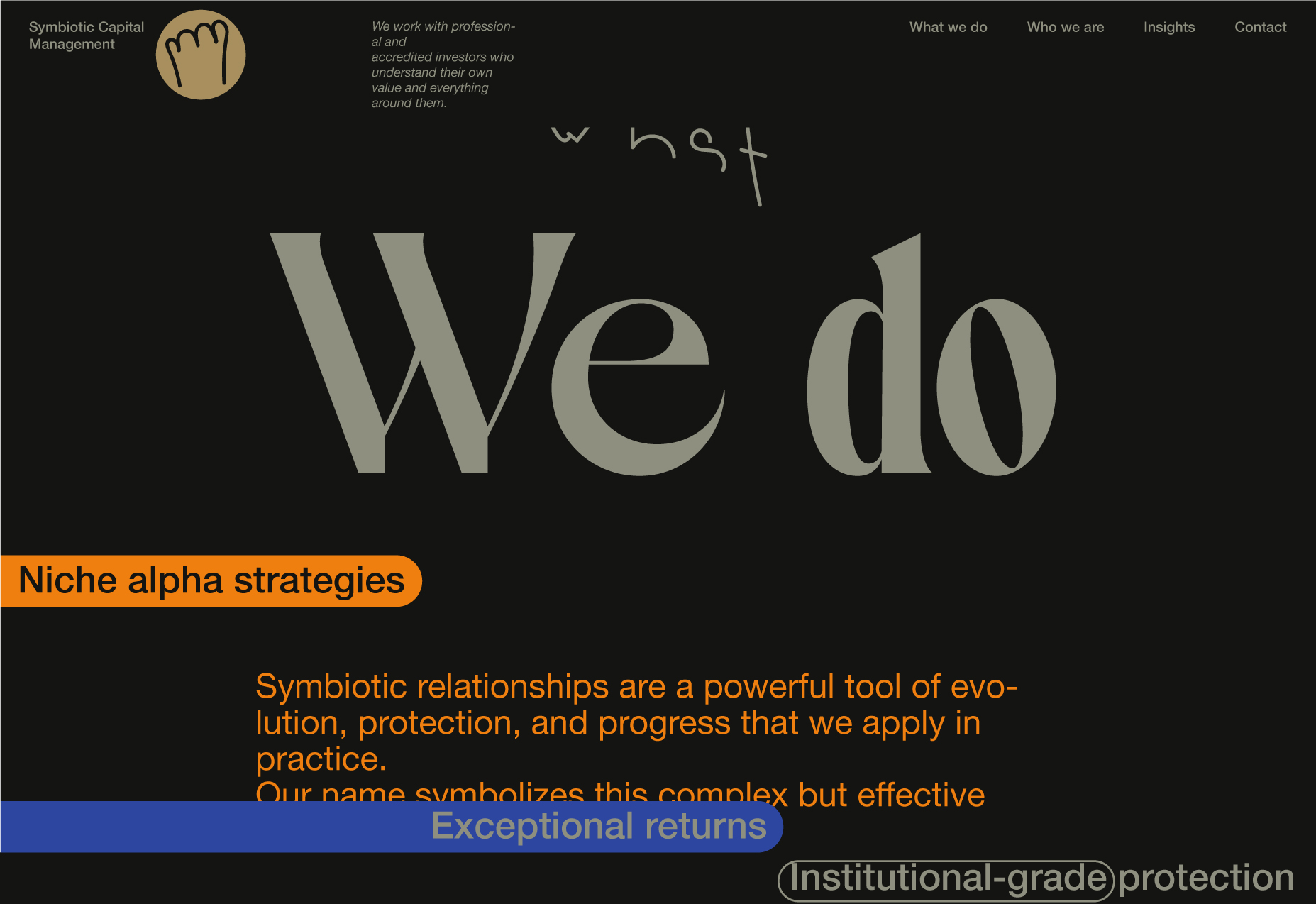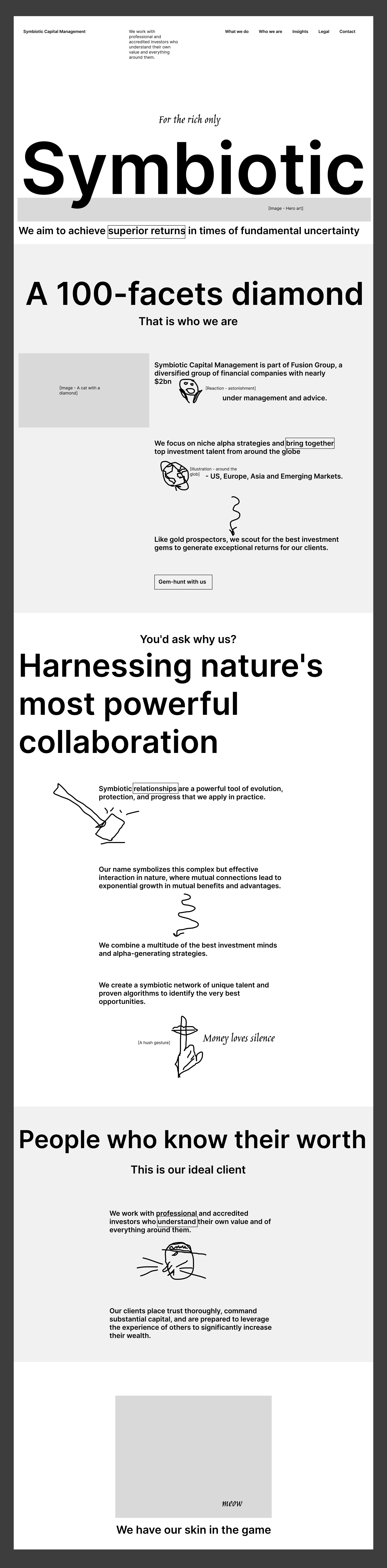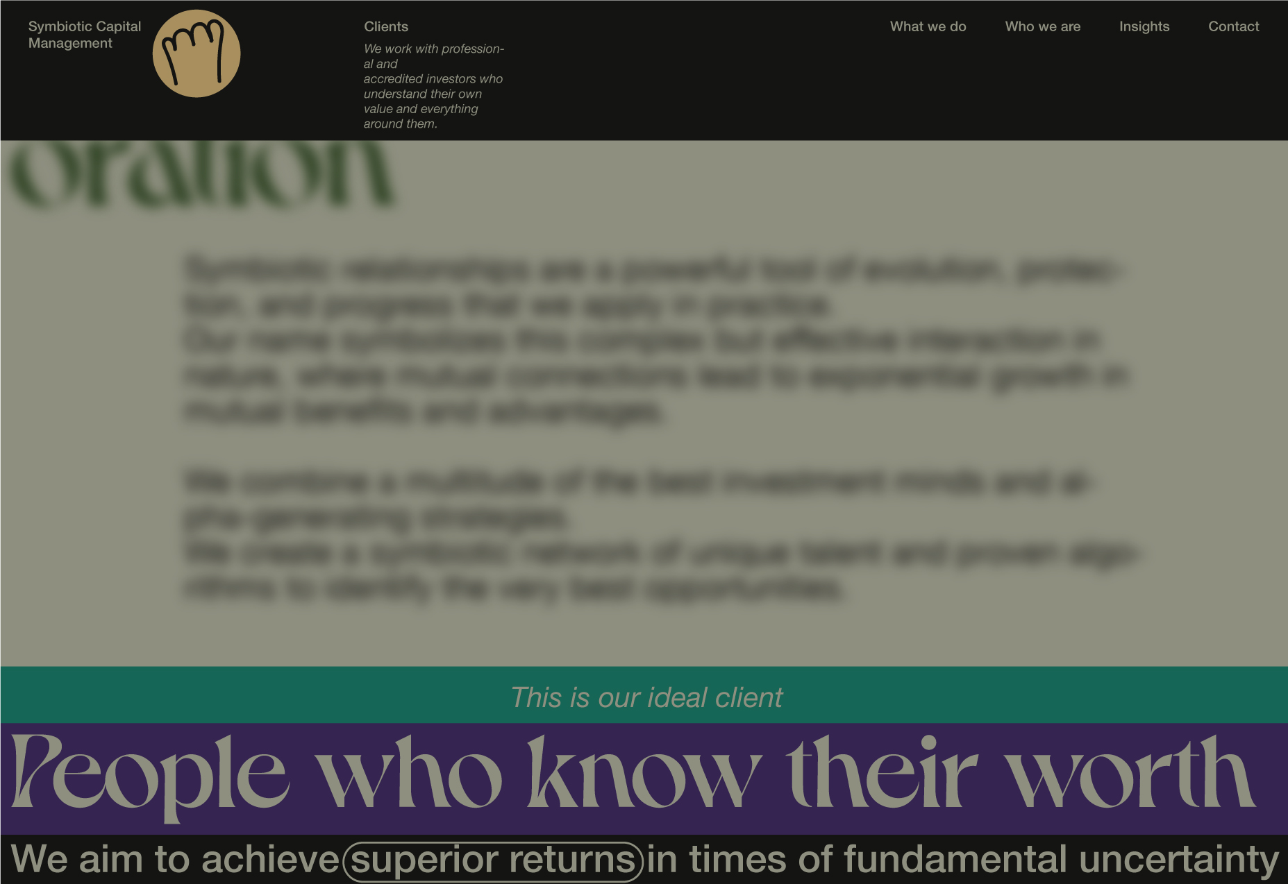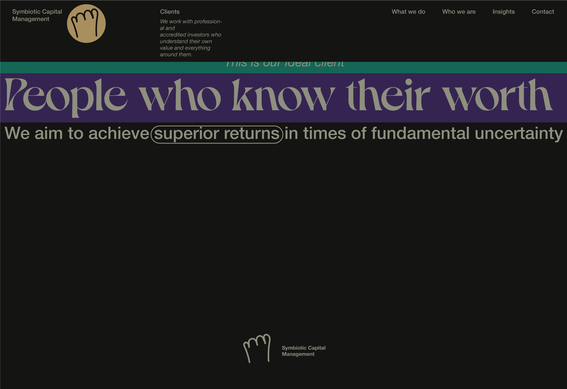 Here, I will be showcasing the website and brand identity formation process for Symbiotic Capital Management. This article includes all the materials from the beginning of the work to the point when I felt I had found the right vector and was ready to share it with folks.