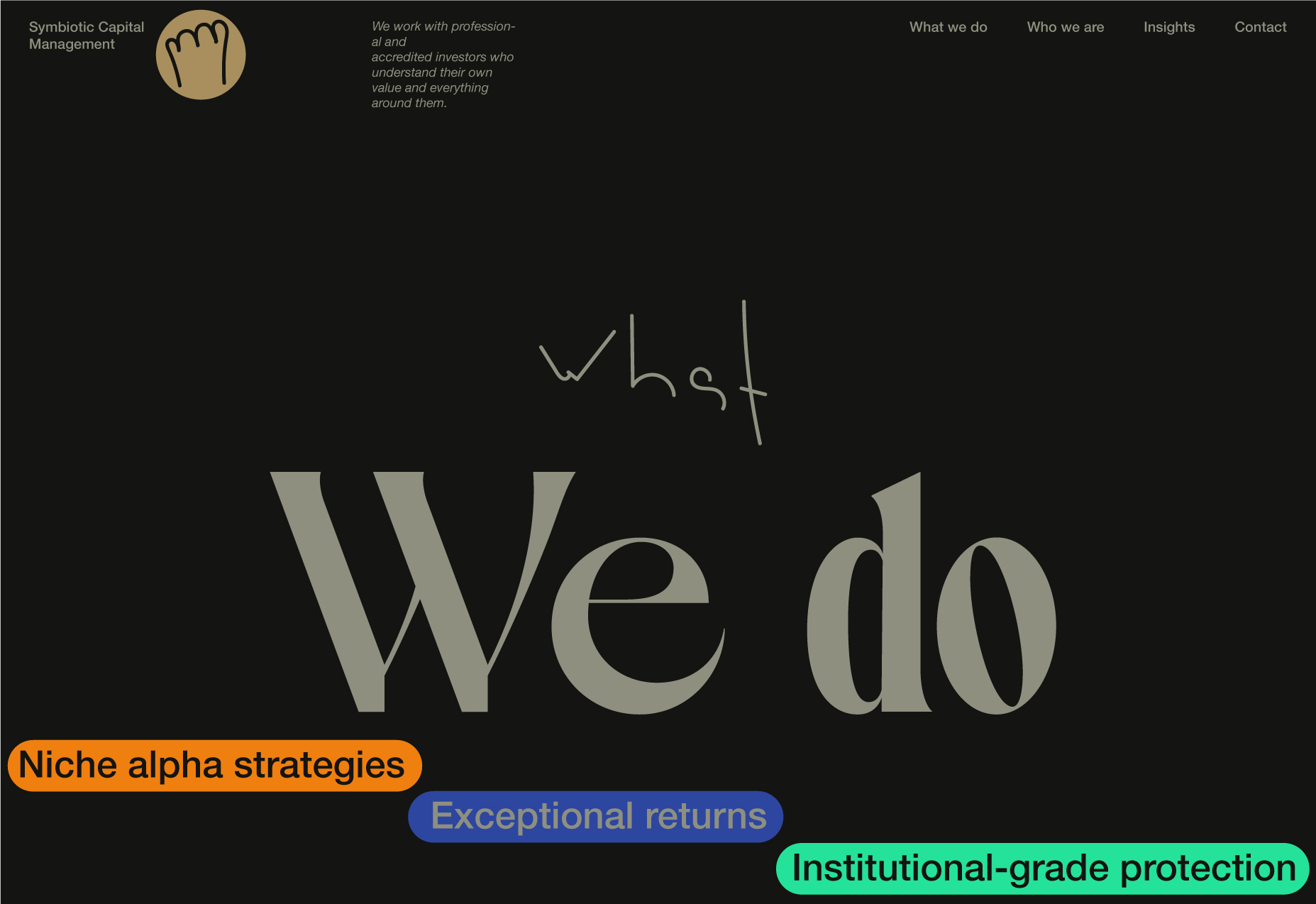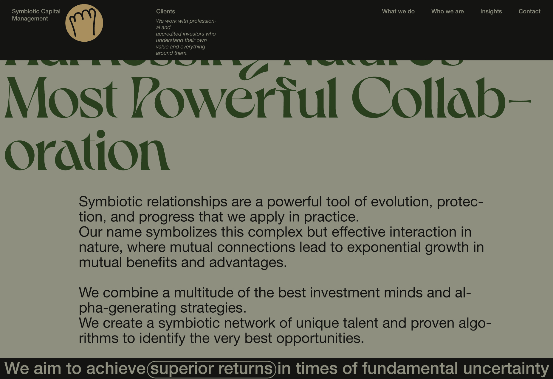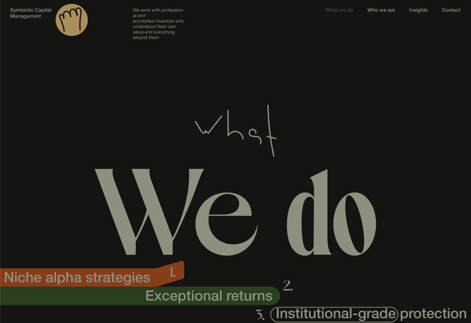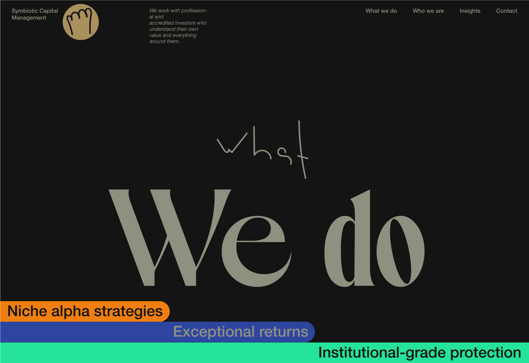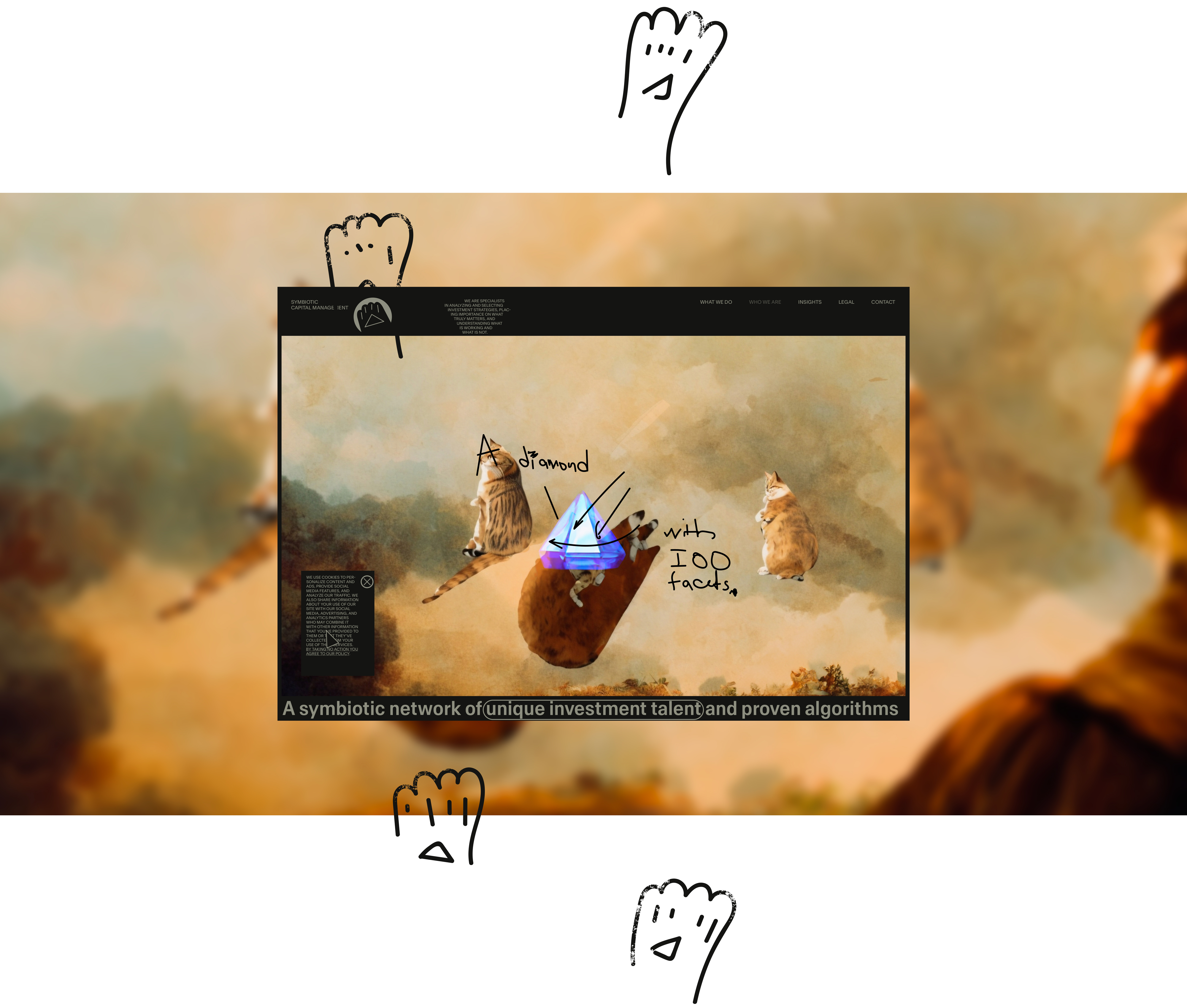 Here, I will be showcasing the website and brand identity formation process for Symbiotic Capital Management. This article includes all the materials from the beginning of the work to the point when I felt I had found the right vector and was ready to share it with folks.