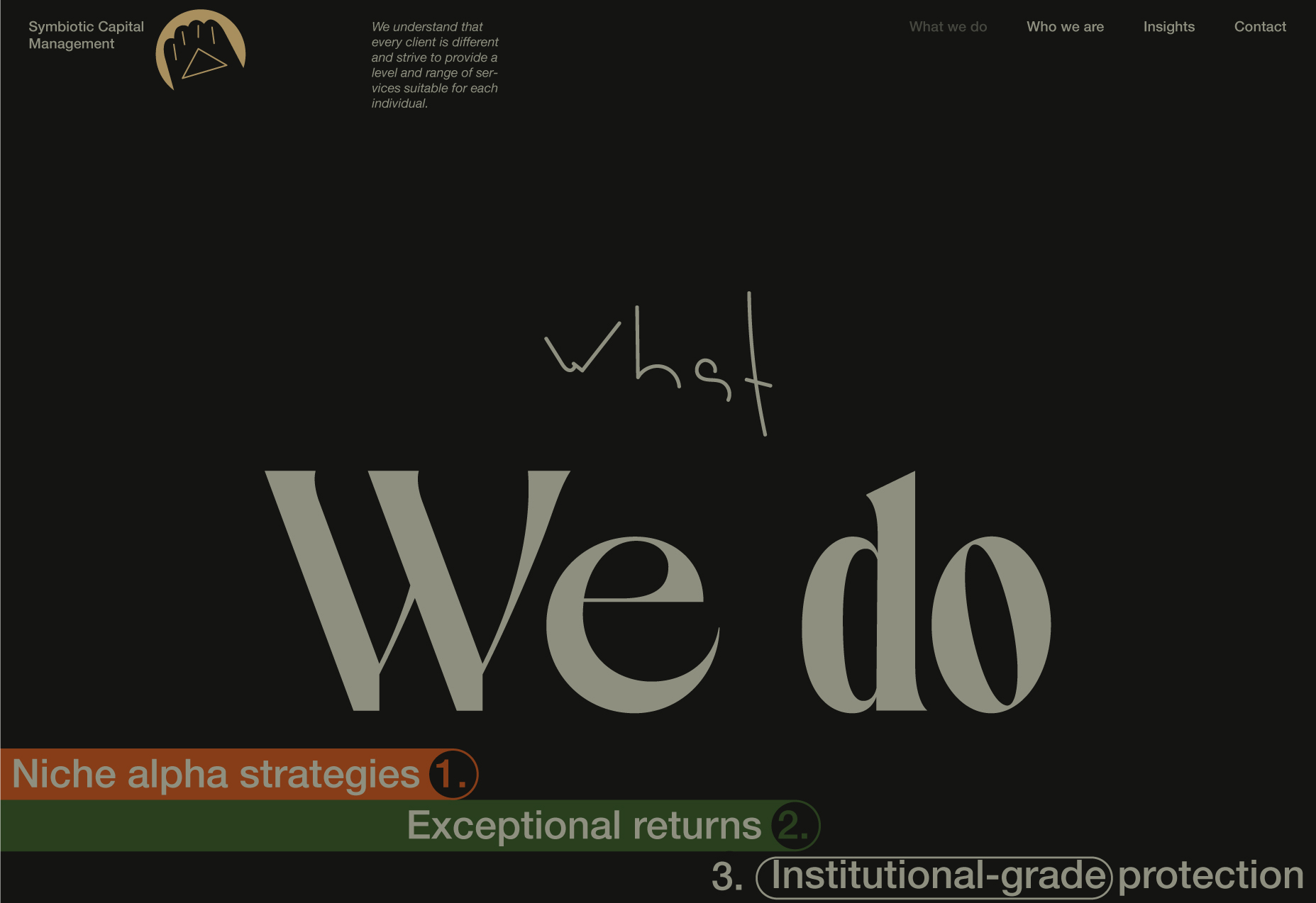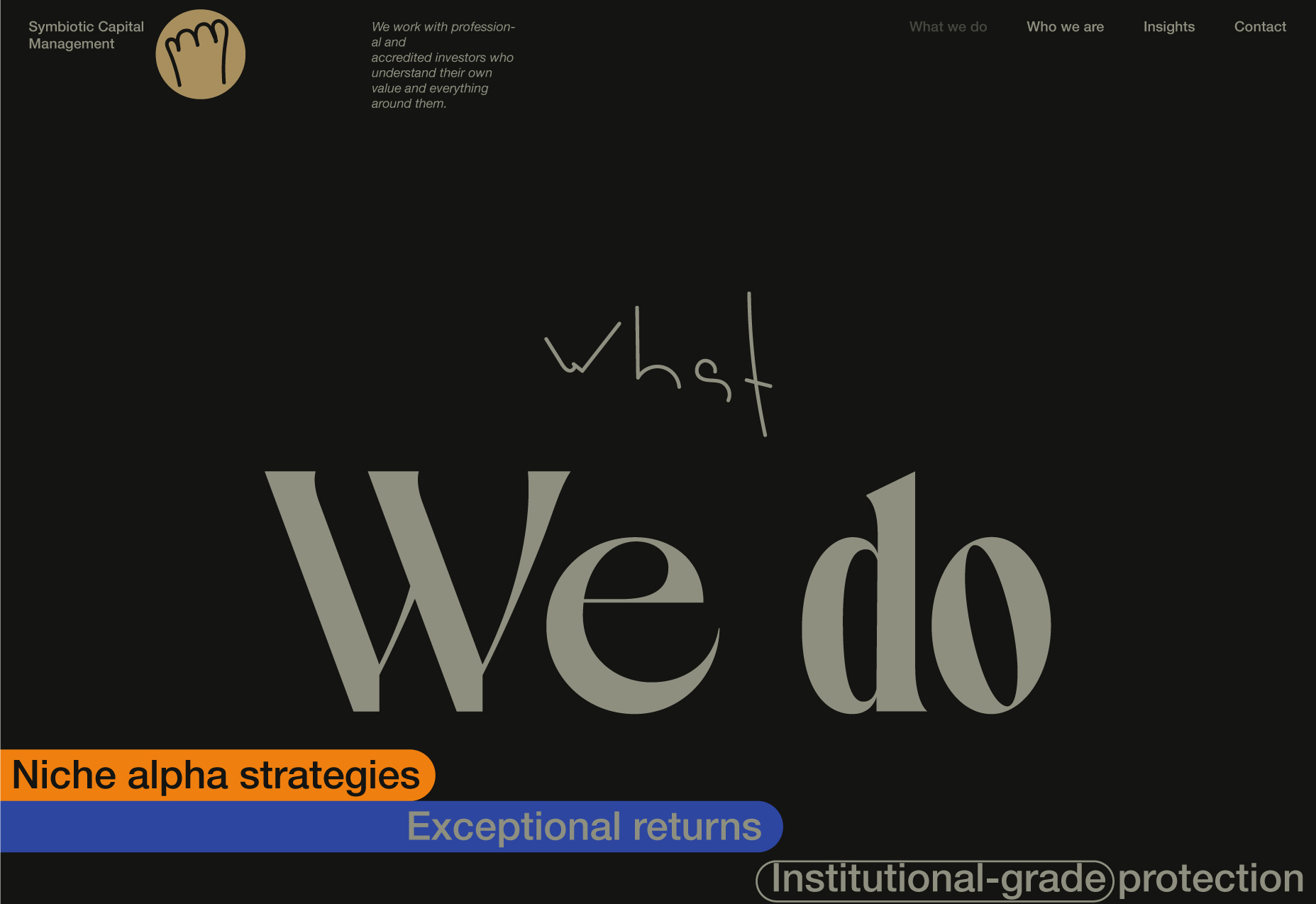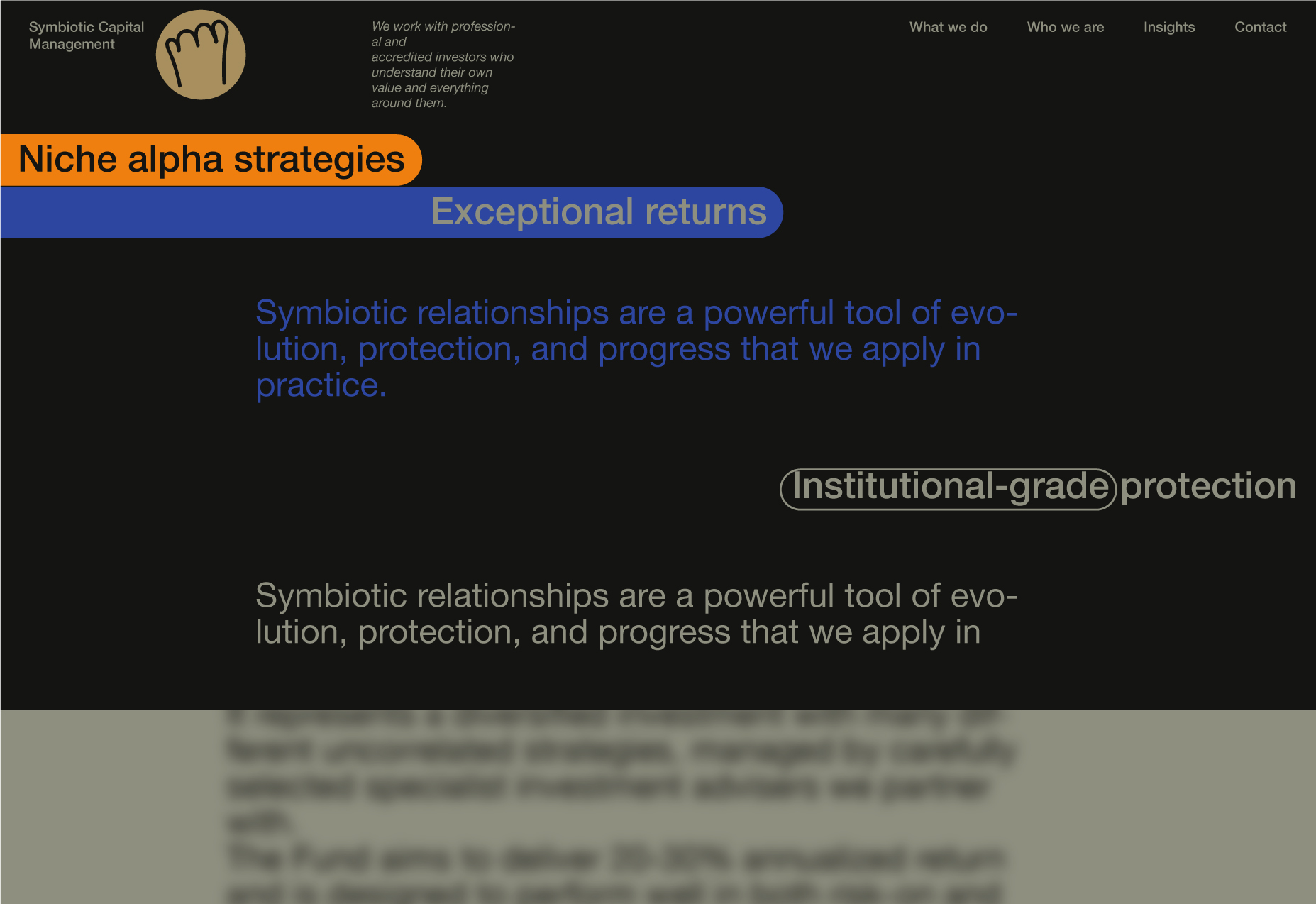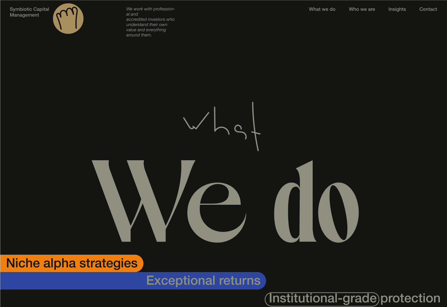 Here, I will be showcasing the website and brand identity formation process for Symbiotic Capital Management. This article includes all the materials from the beginning of the work to the point when I felt I had found the right vector and was ready to share it with folks.