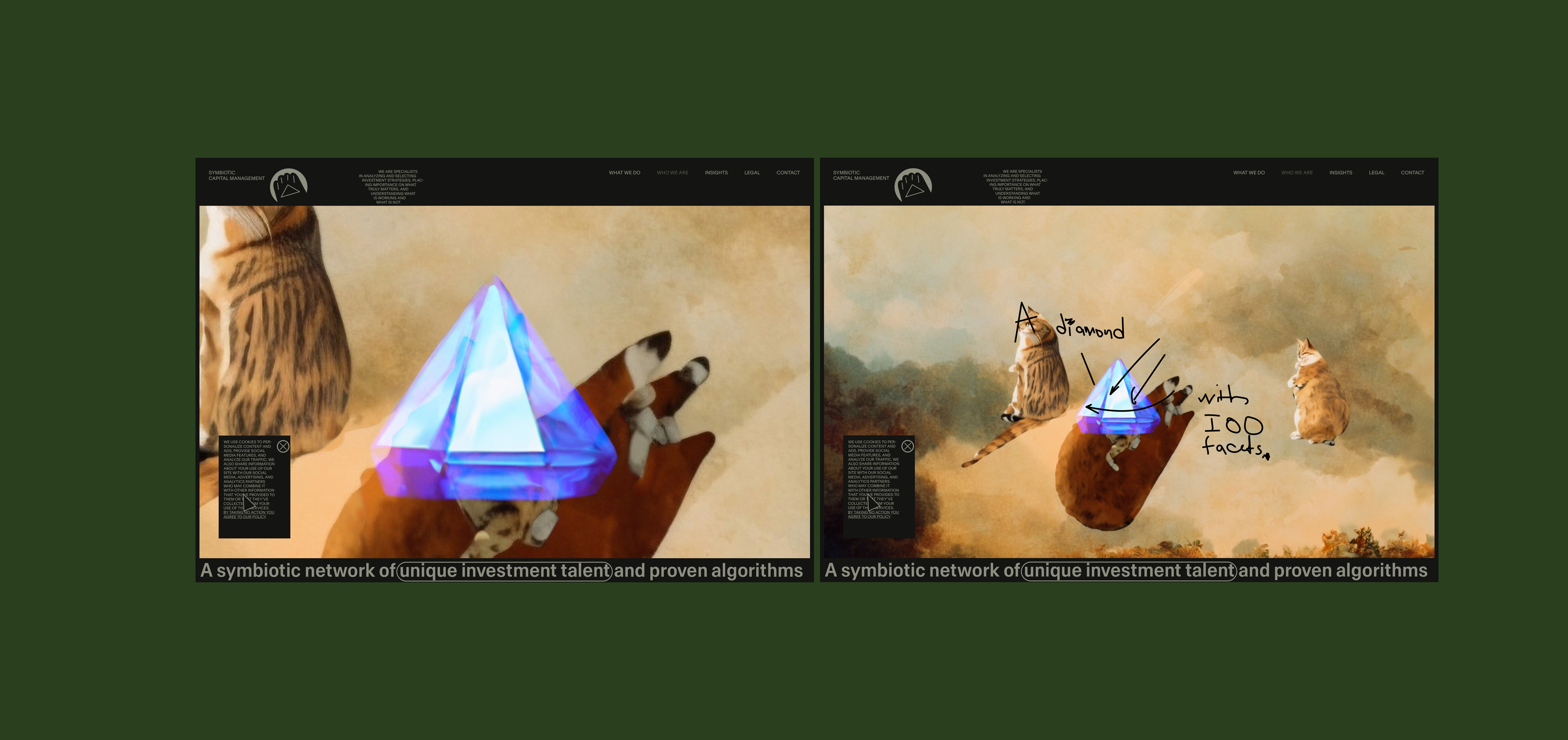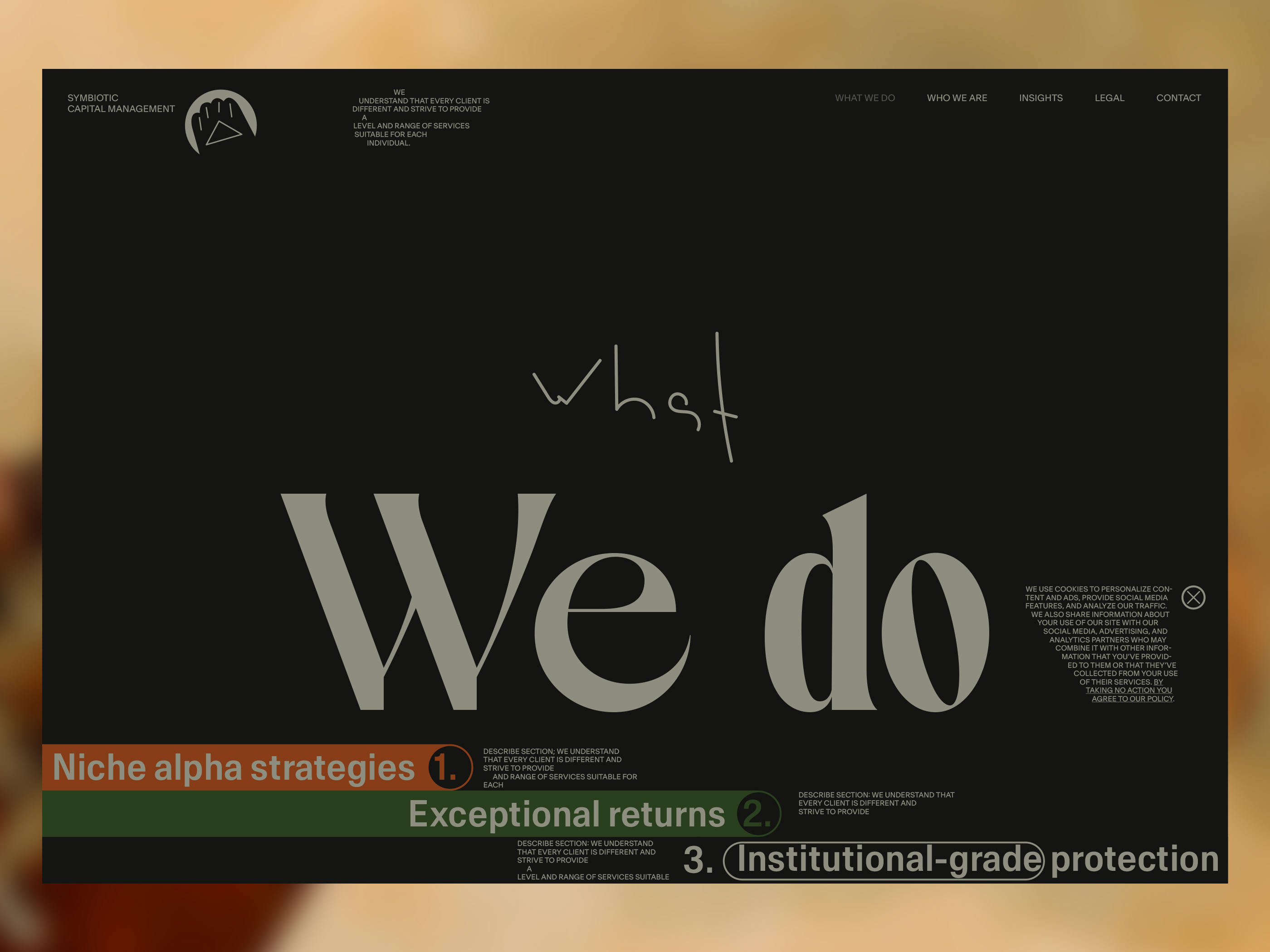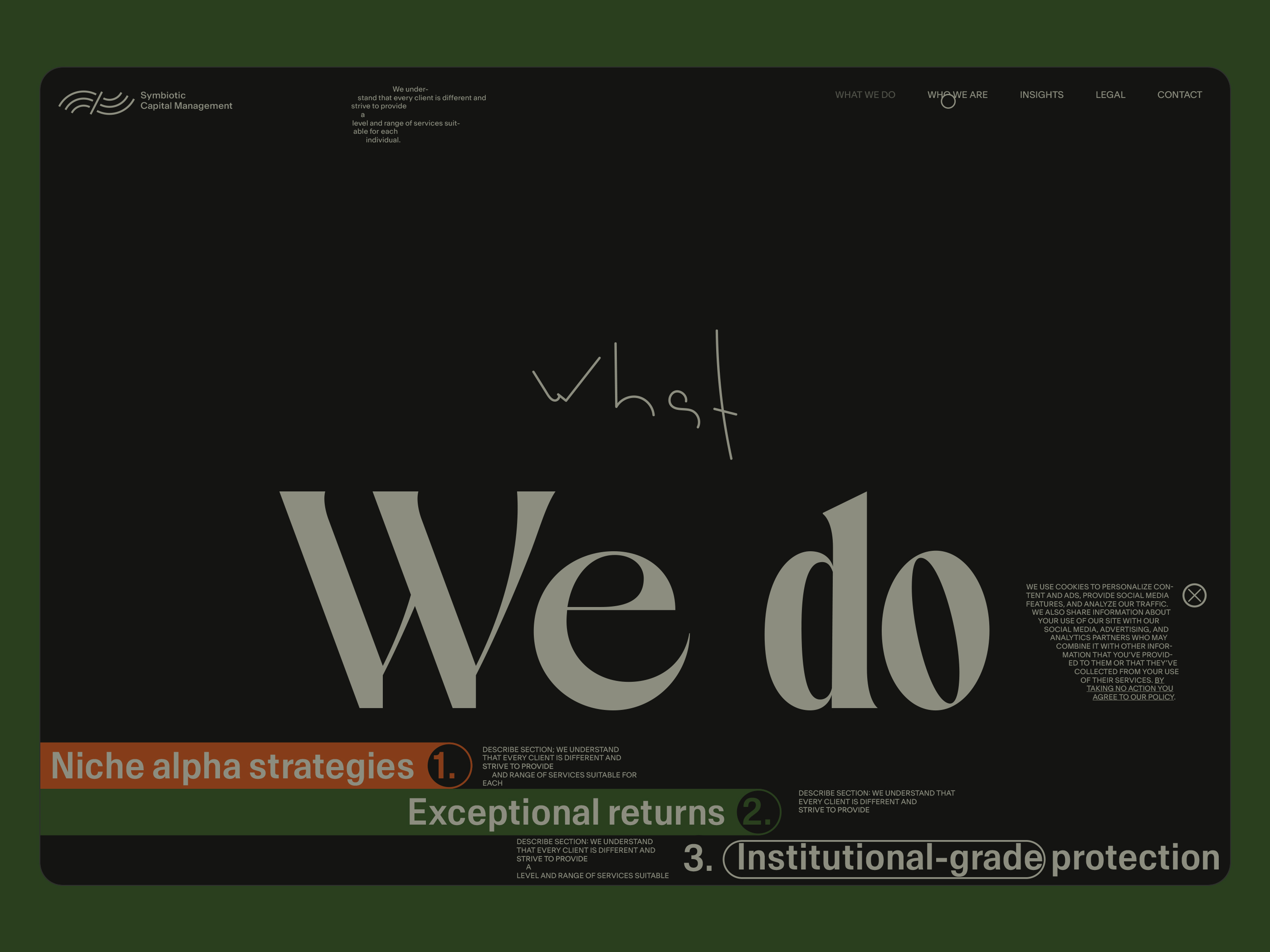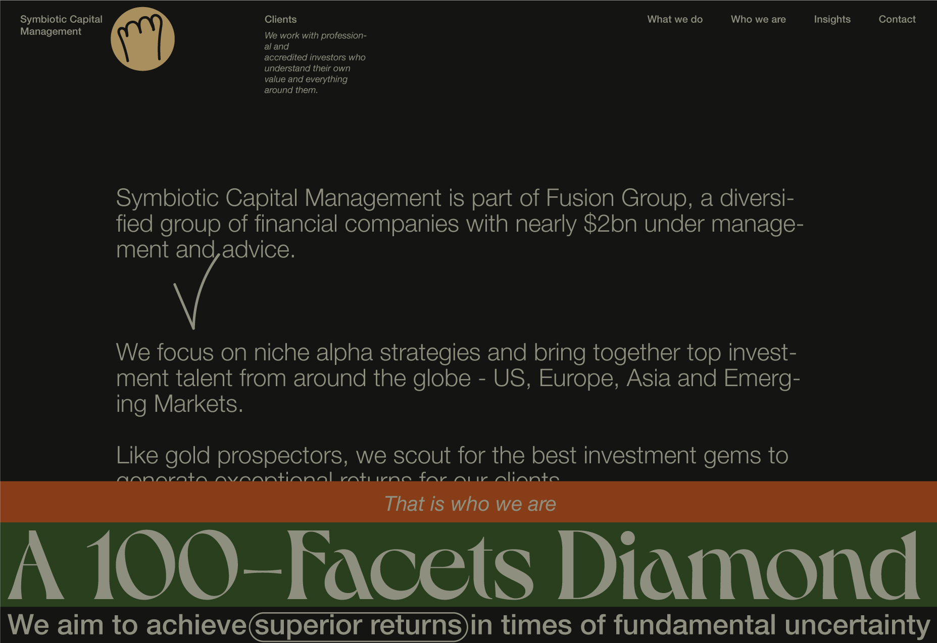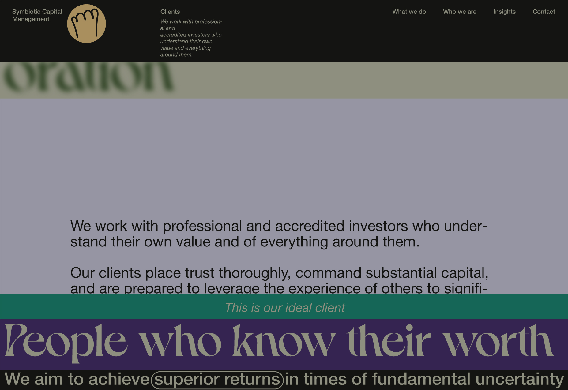 Here, I will be showcasing the website and brand identity formation process for Symbiotic Capital Management. This article includes all the materials from the beginning of the work to the point when I felt I had found the right vector and was ready to share it with folks.