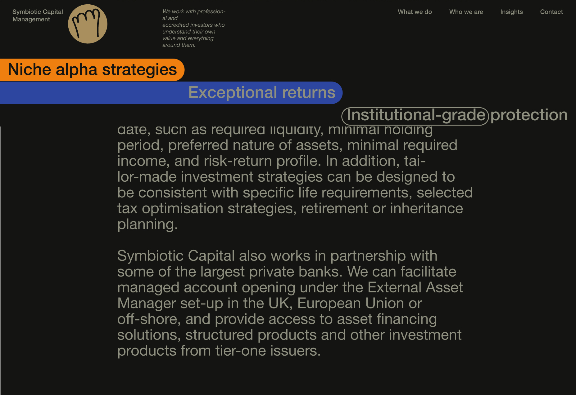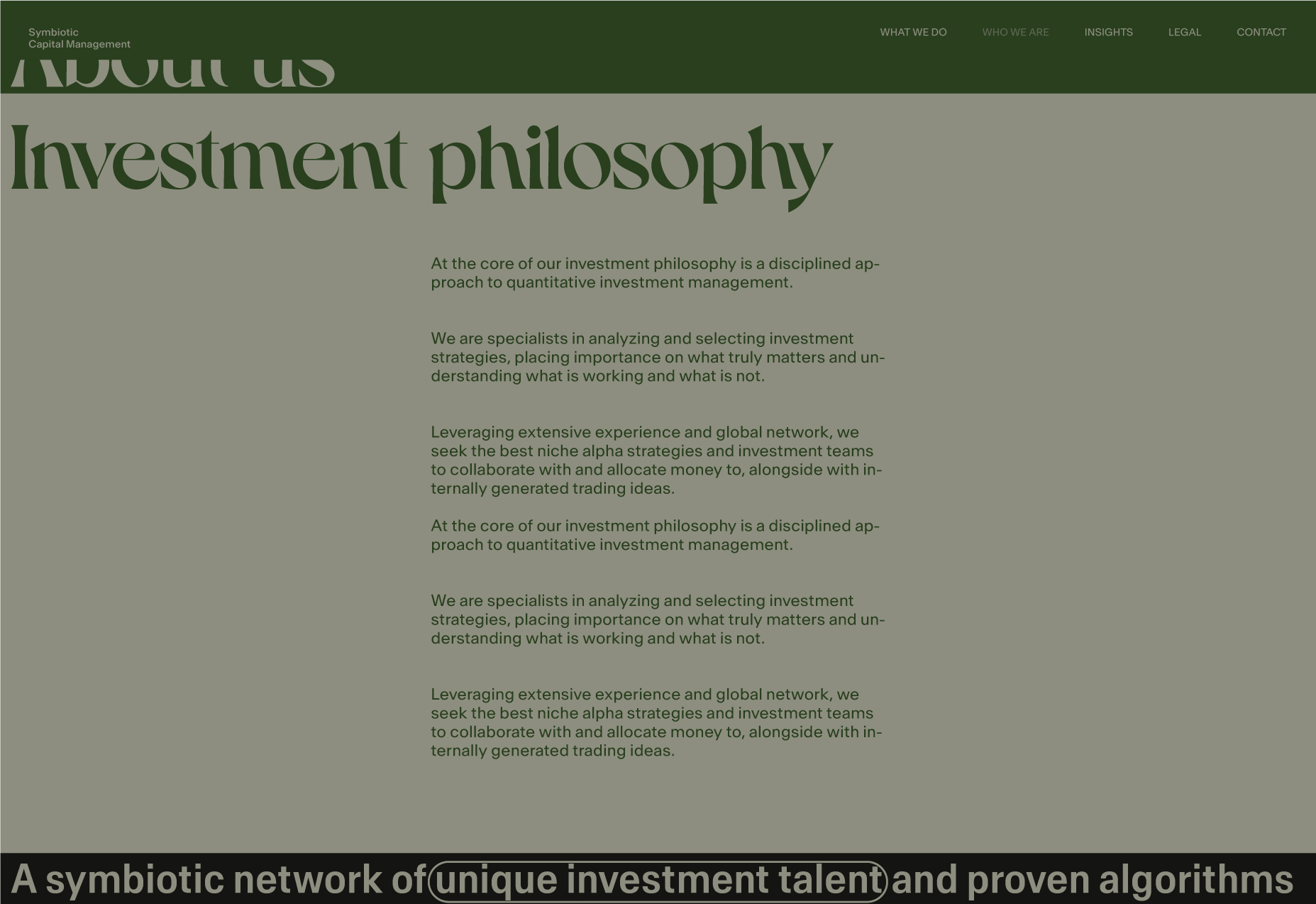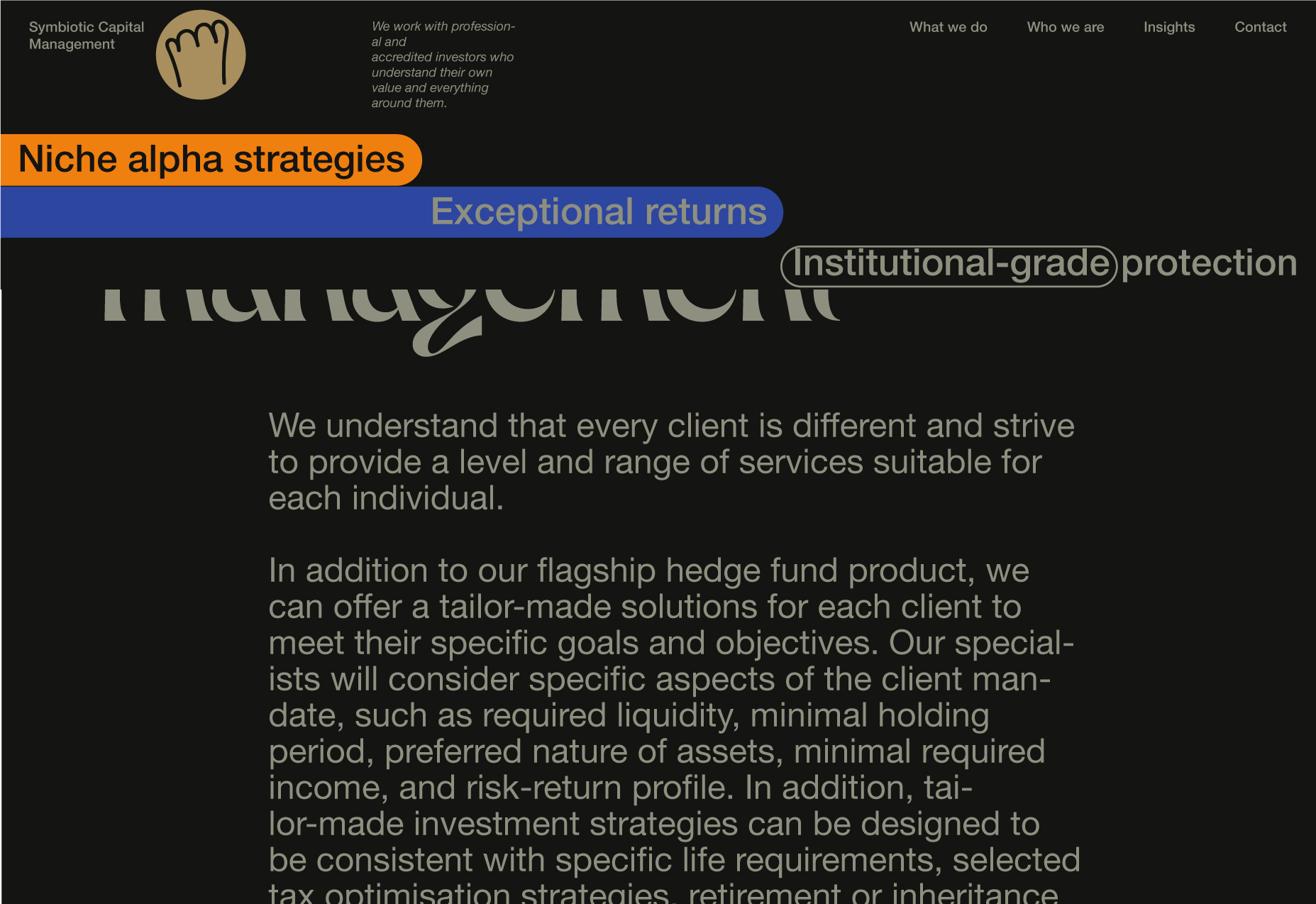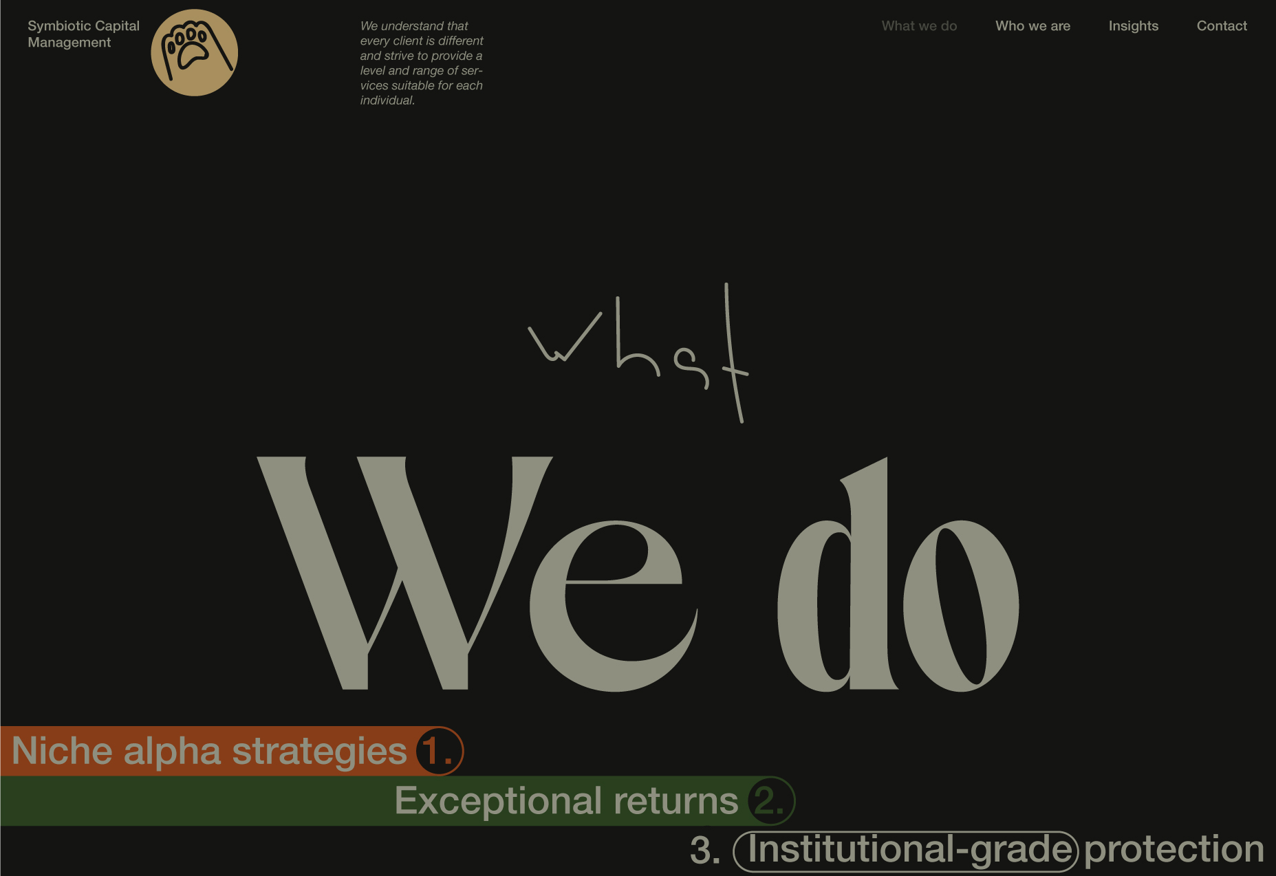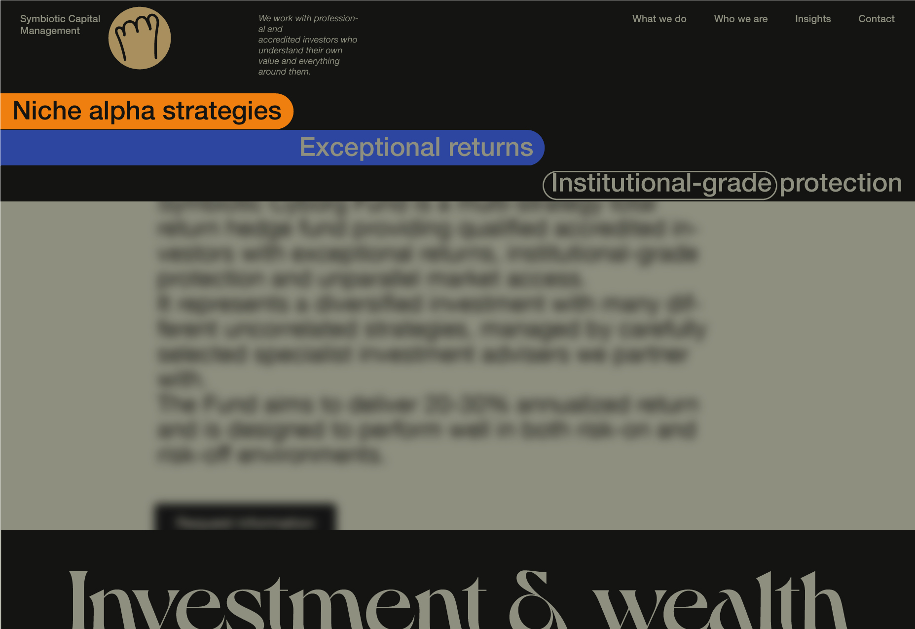 Here, I will be showcasing the website and brand identity formation process for Symbiotic Capital Management. This article includes all the materials from the beginning of the work to the point when I felt I had found the right vector and was ready to share it with folks.