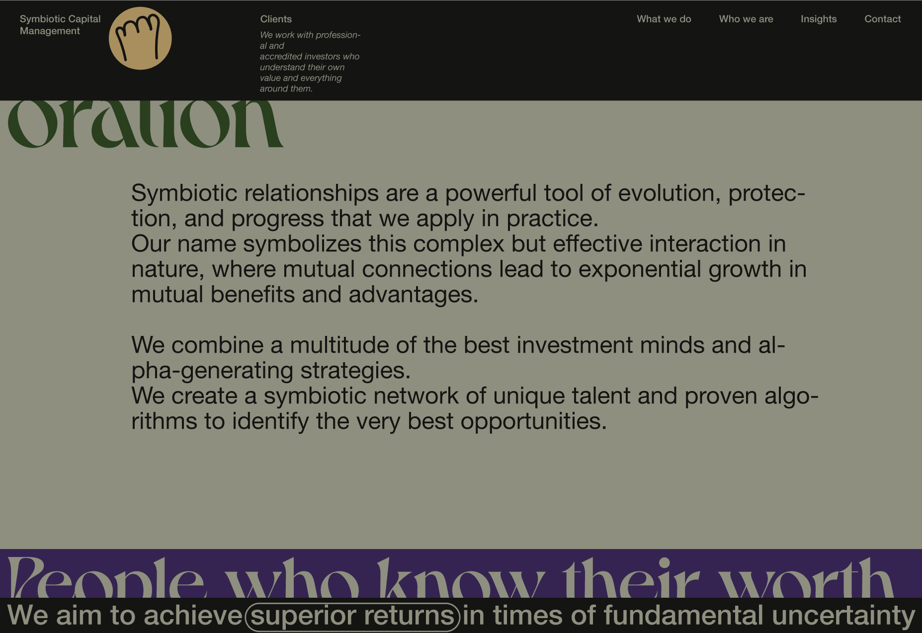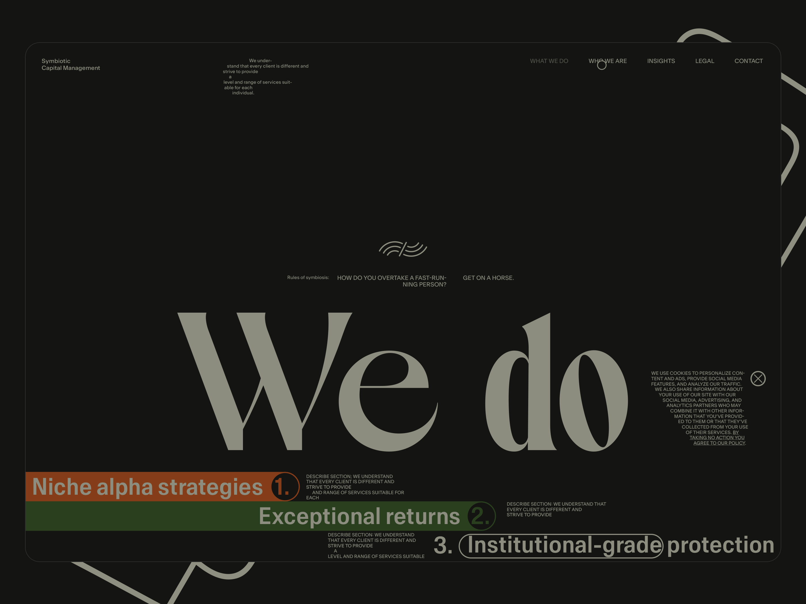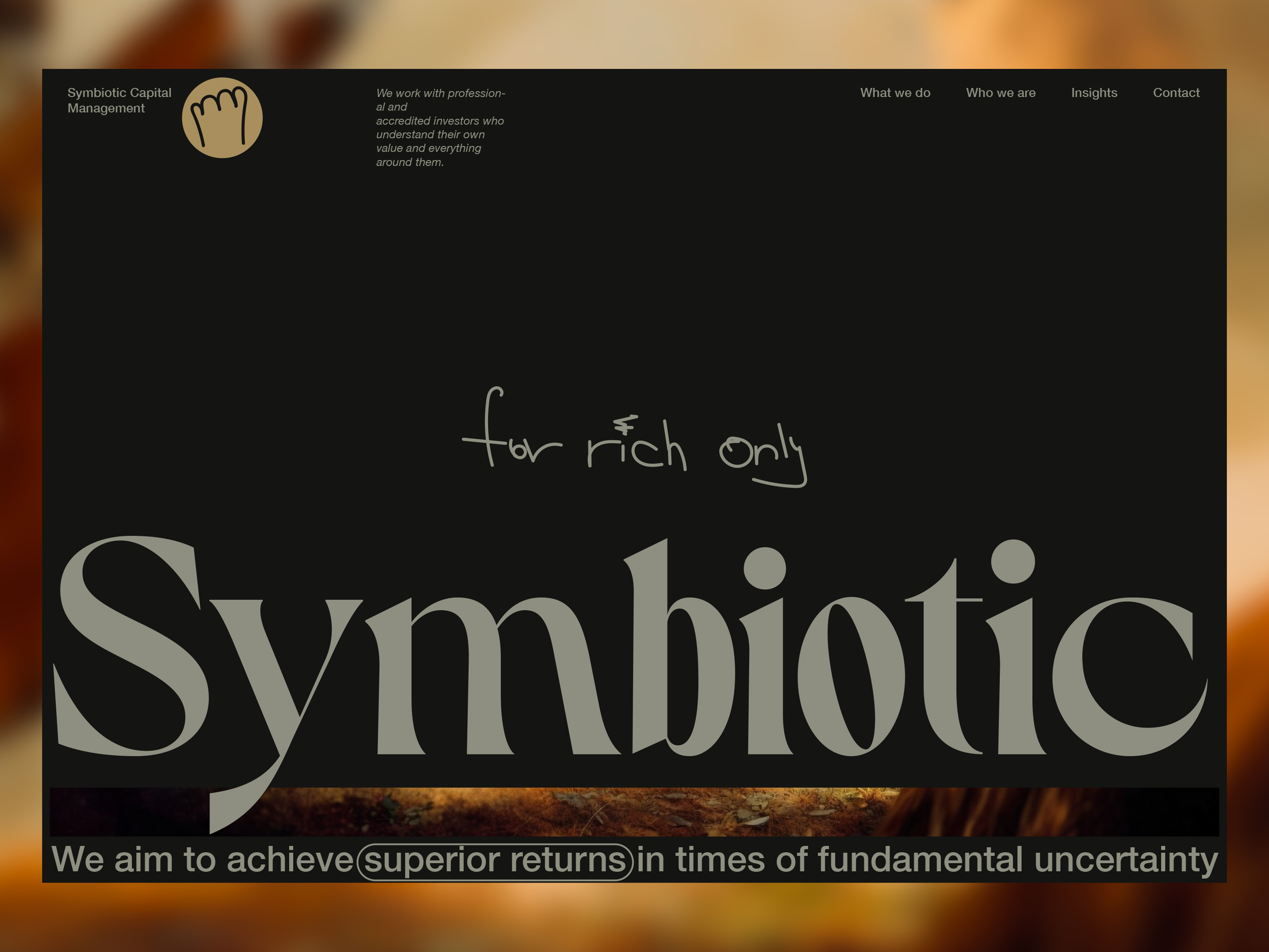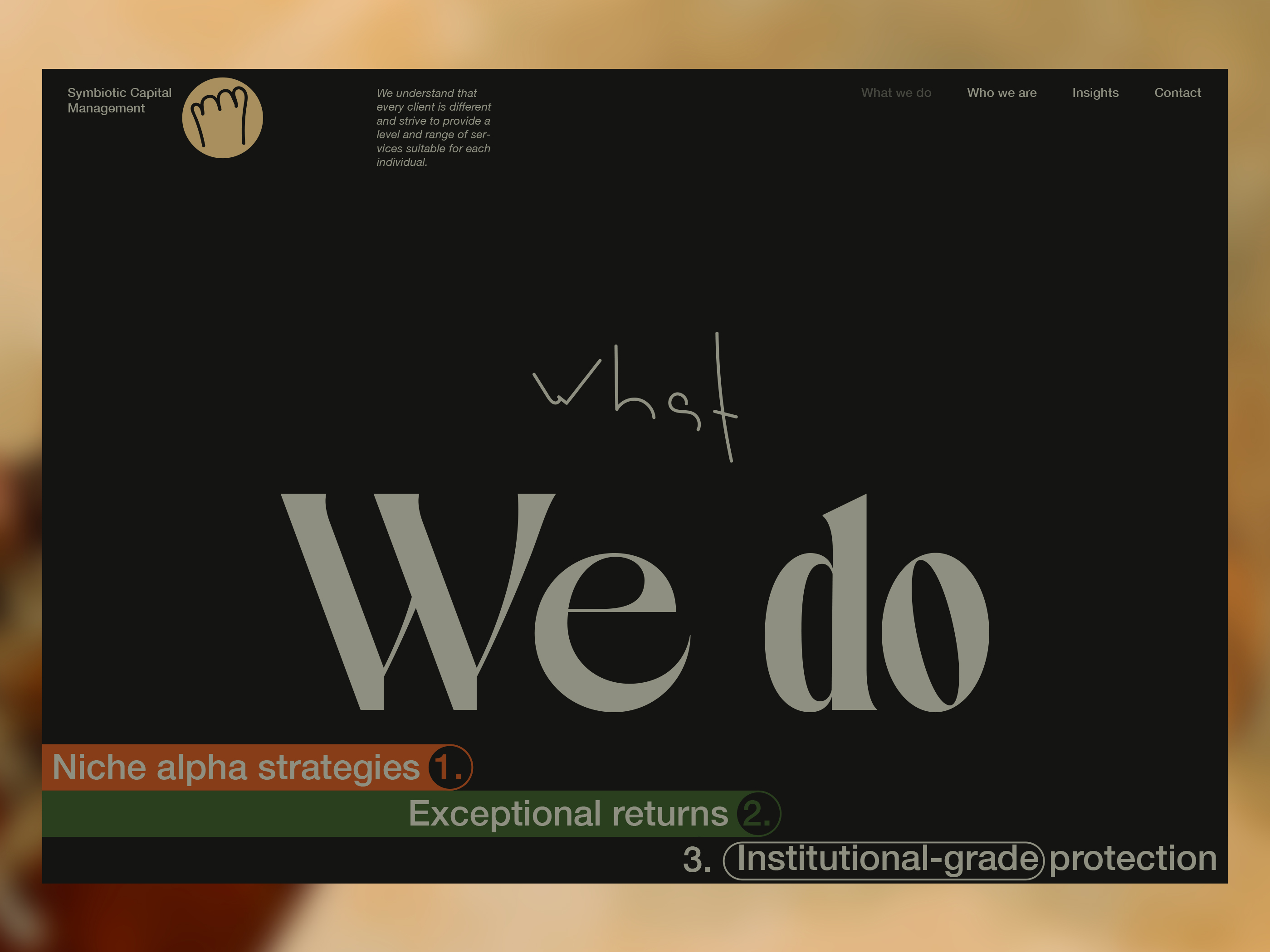 Here, I will be showcasing the website and brand identity formation process for Symbiotic Capital Management. This article includes all the materials from the beginning of the work to the point when I felt I had found the right vector and was ready to share it with folks.