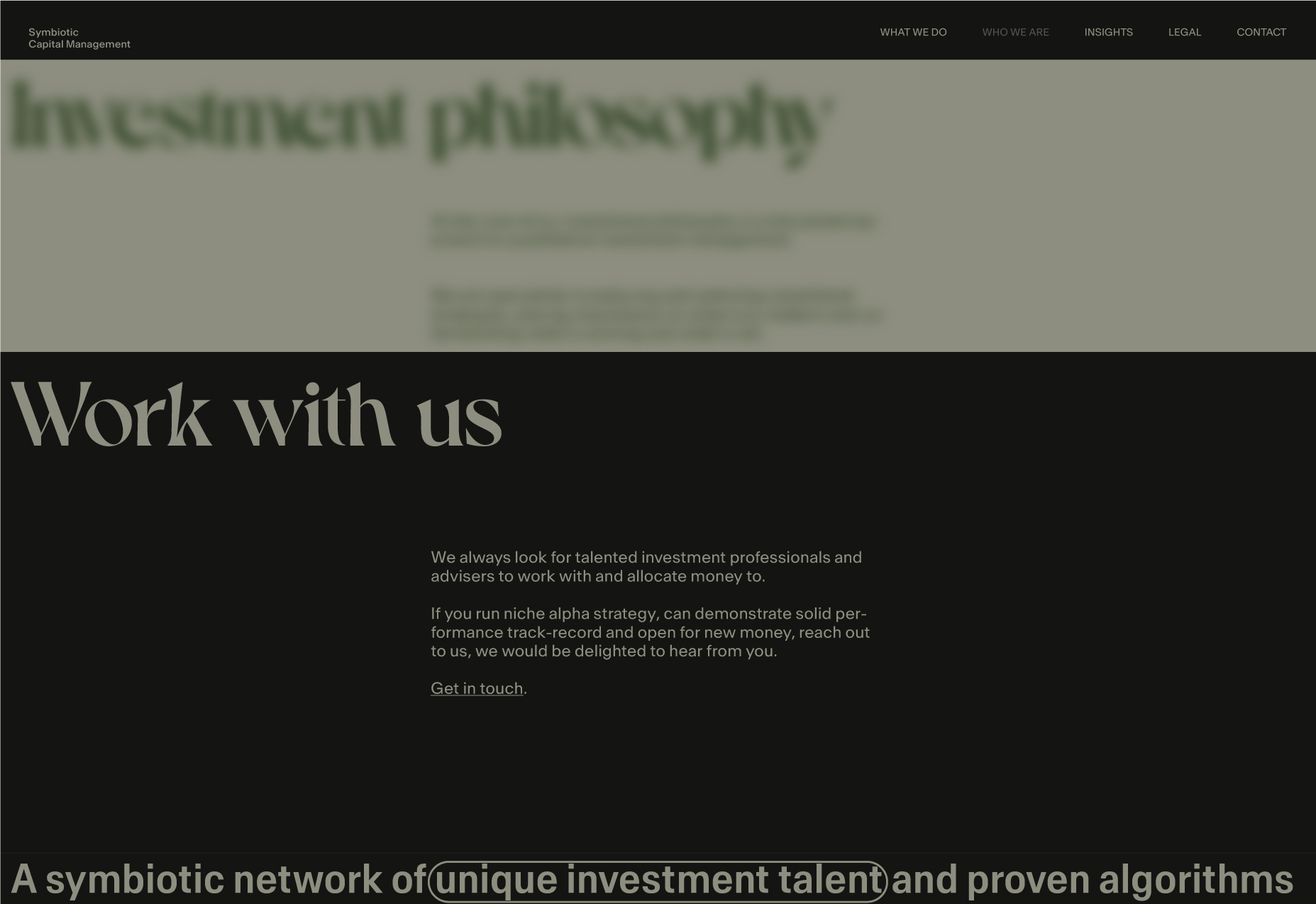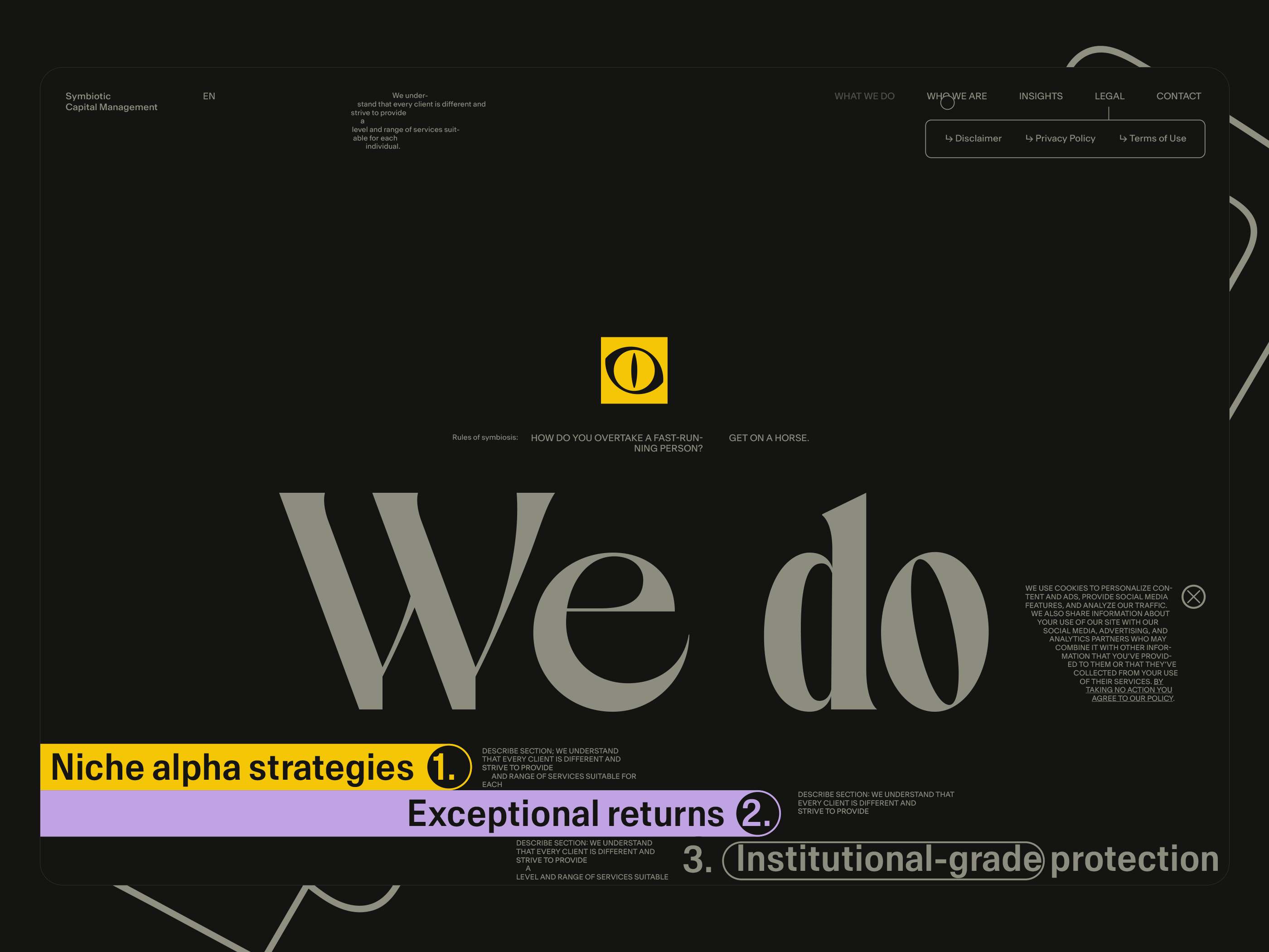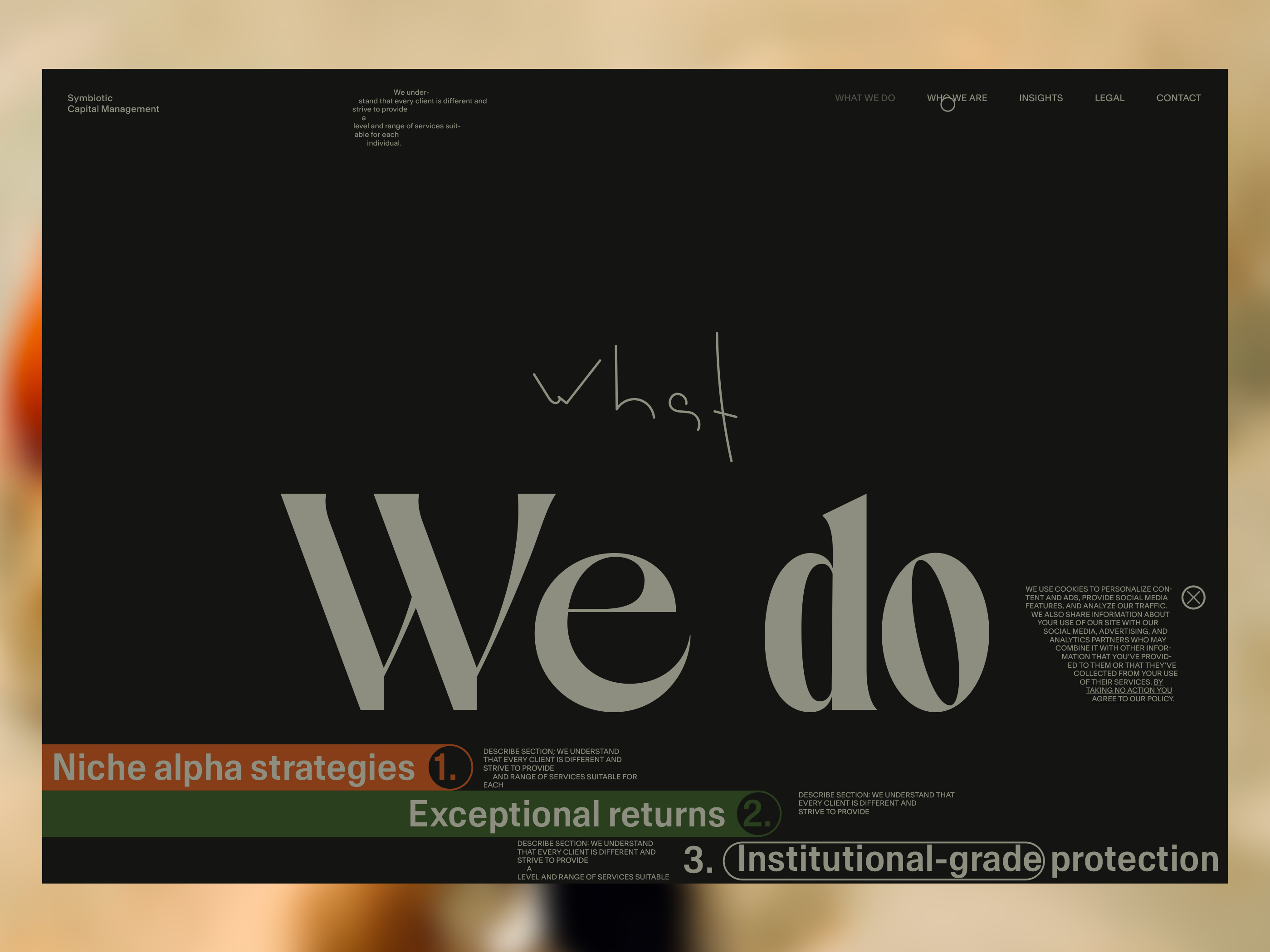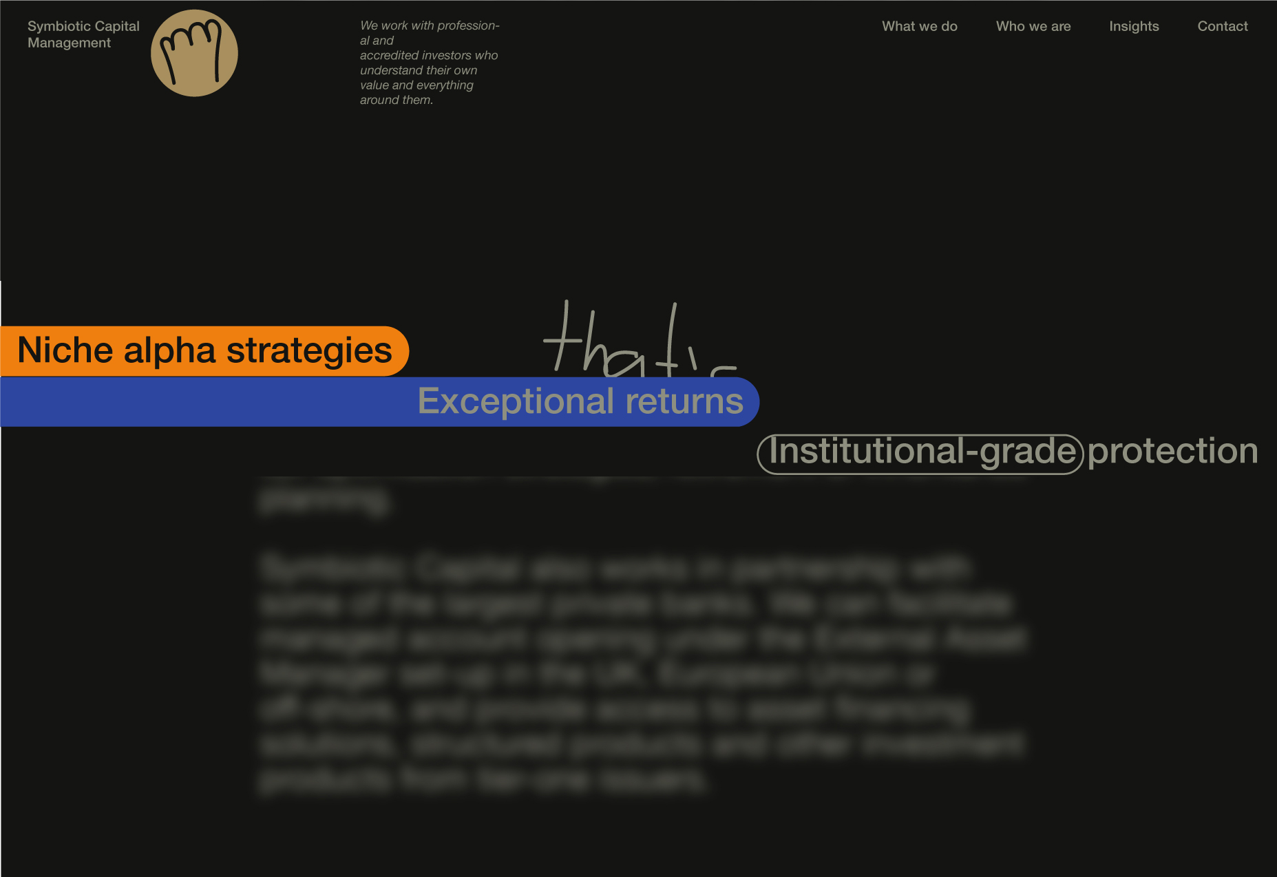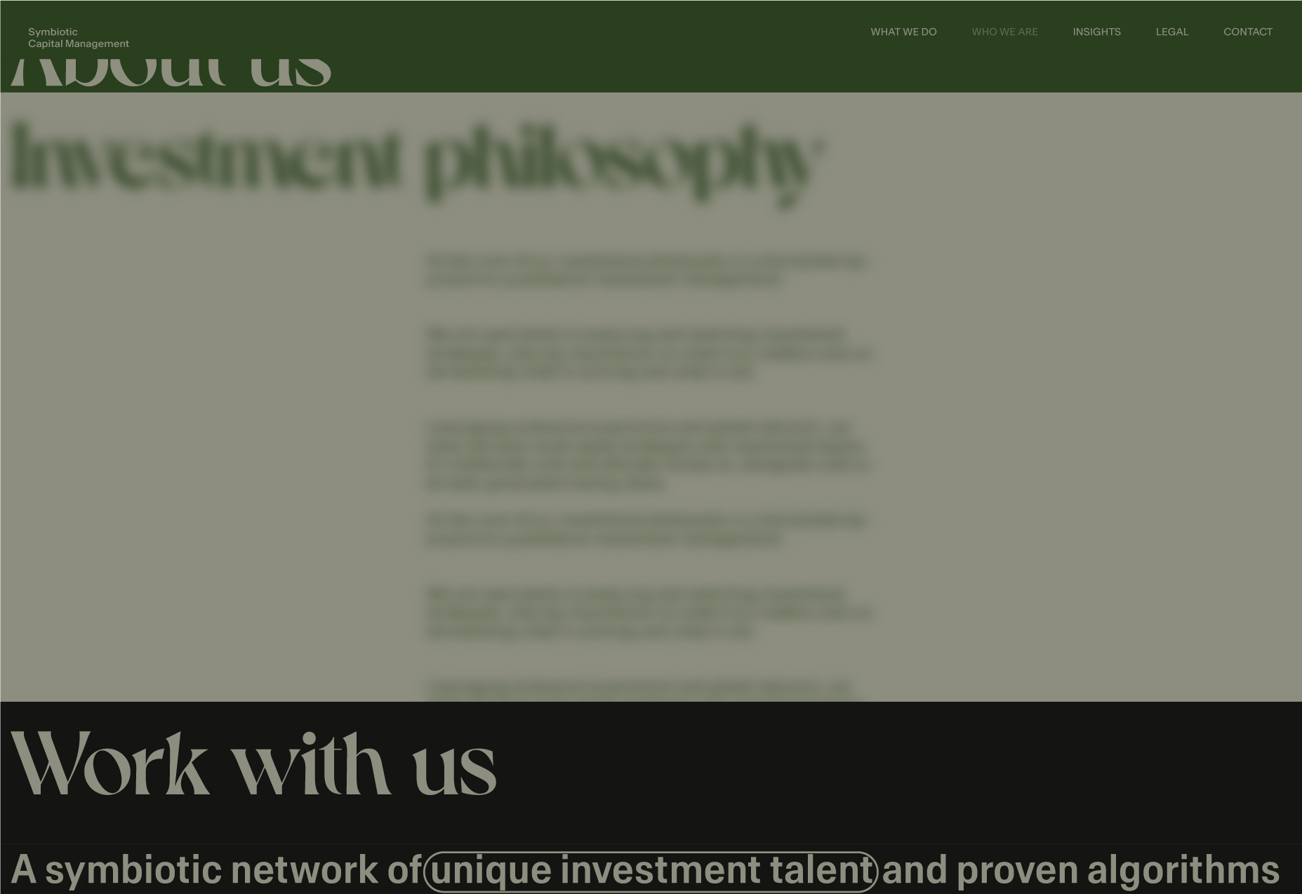 Here, I will be showcasing the website and brand identity formation process for Symbiotic Capital Management. This article includes all the materials from the beginning of the work to the point when I felt I had found the right vector and was ready to share it with folks.