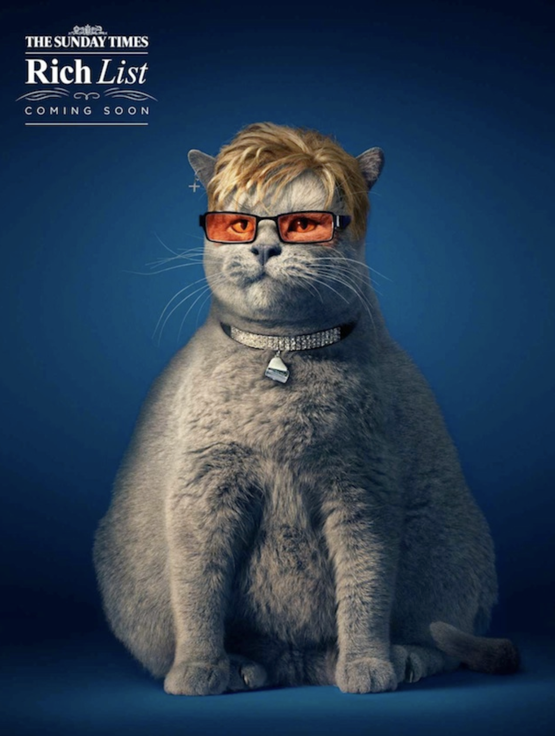 The term "Fat Cat" in English has a play on words: literally, it is "fat cat," but this is what the rich and successful people of the country are called. Photographer Tim Flach photographed the fat cats, and then Anthony Crossfield attached the faces of Richard Branson, Elton John, and Simon Cowell to them.