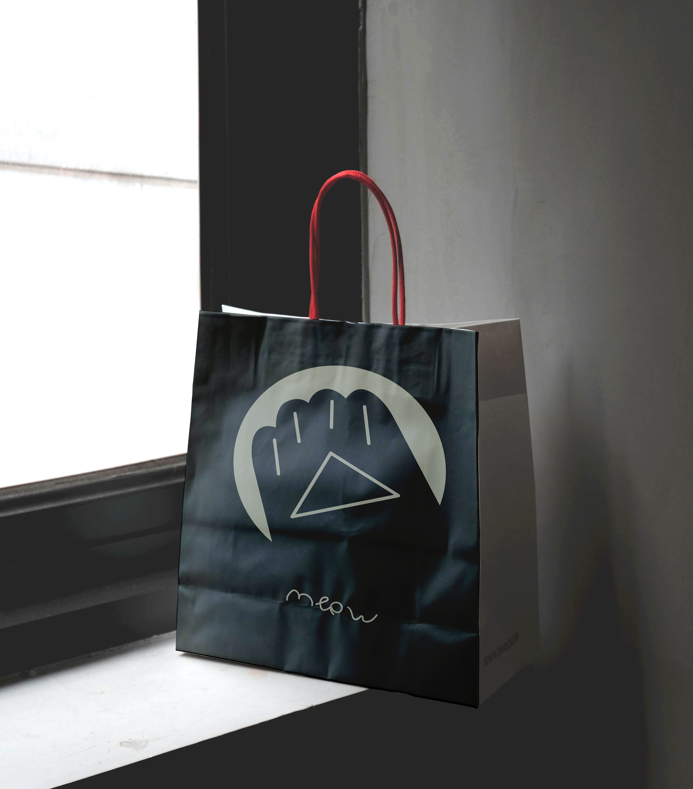 Logomark and "Meow" instead of Hello or Thank You.