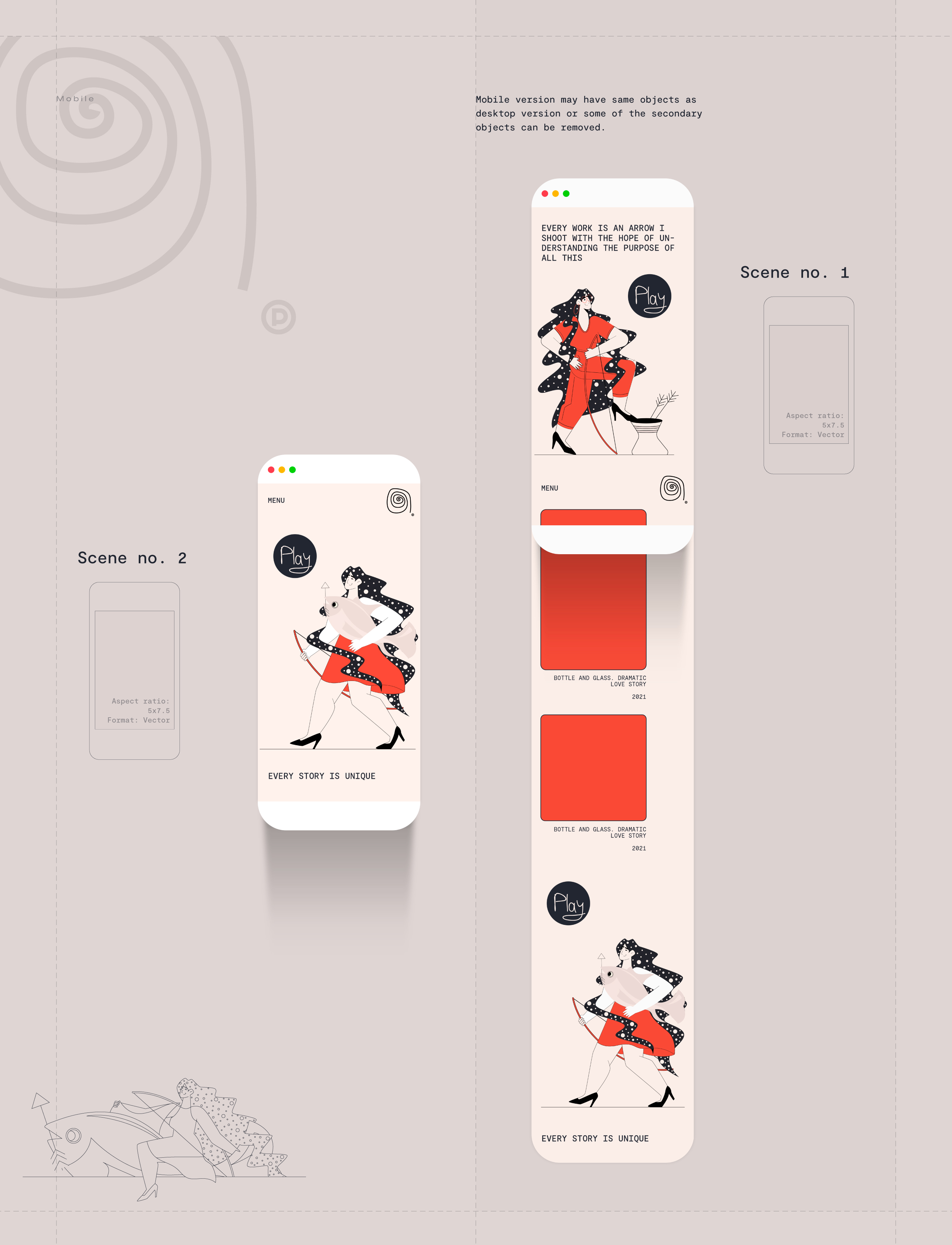 The artworks are created based on scenarios and minimum development guides, which are not planned to limit the artist from creating his vision of the story.