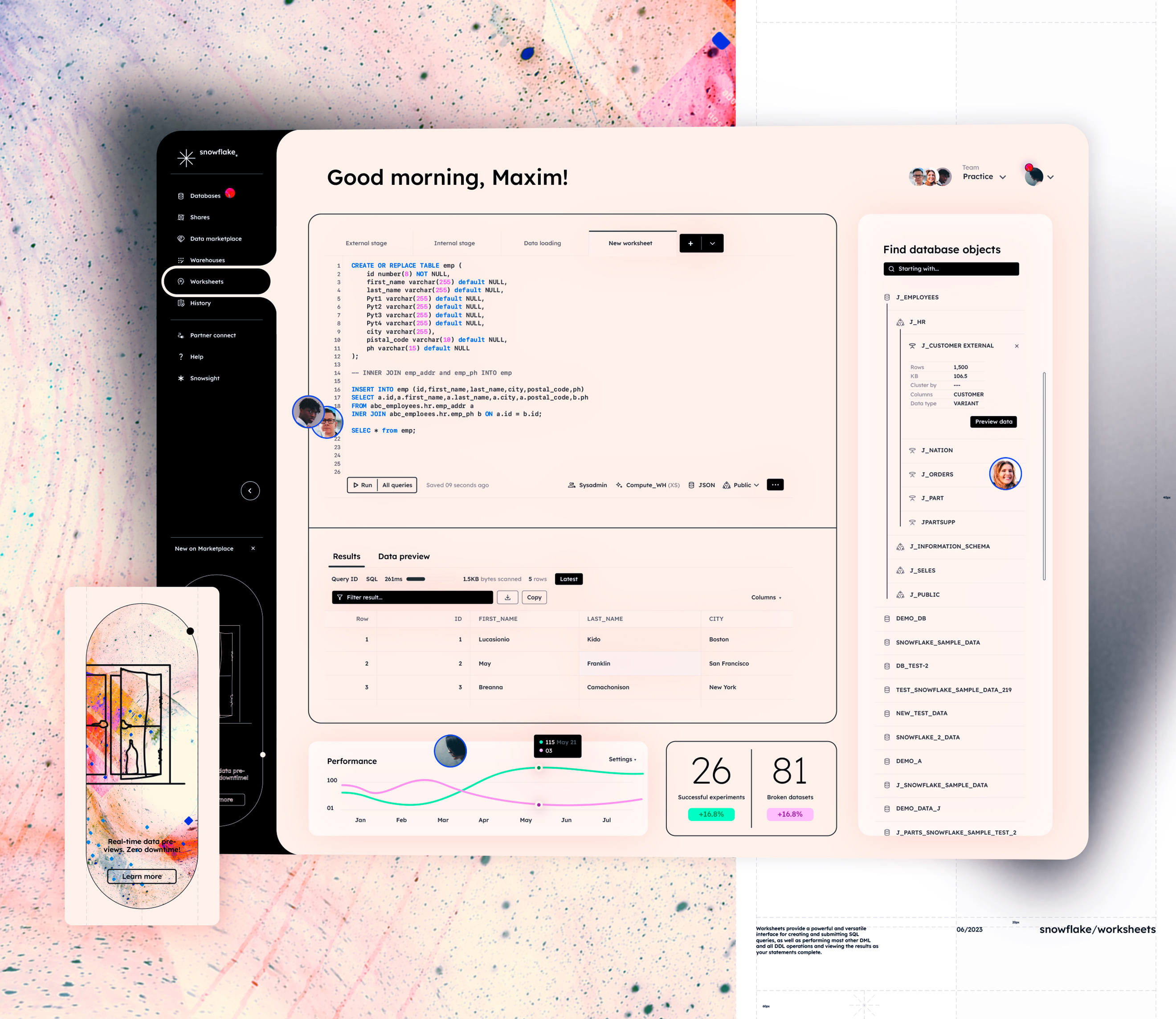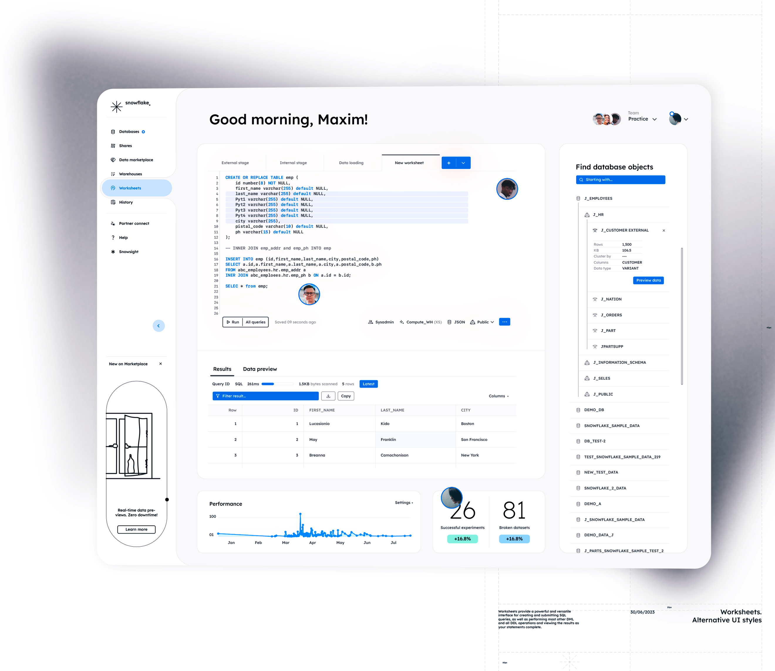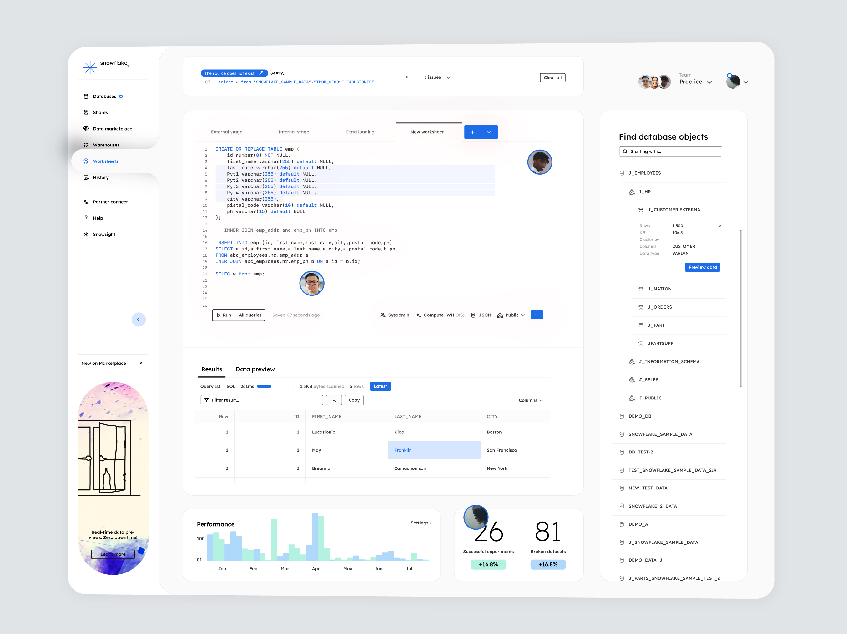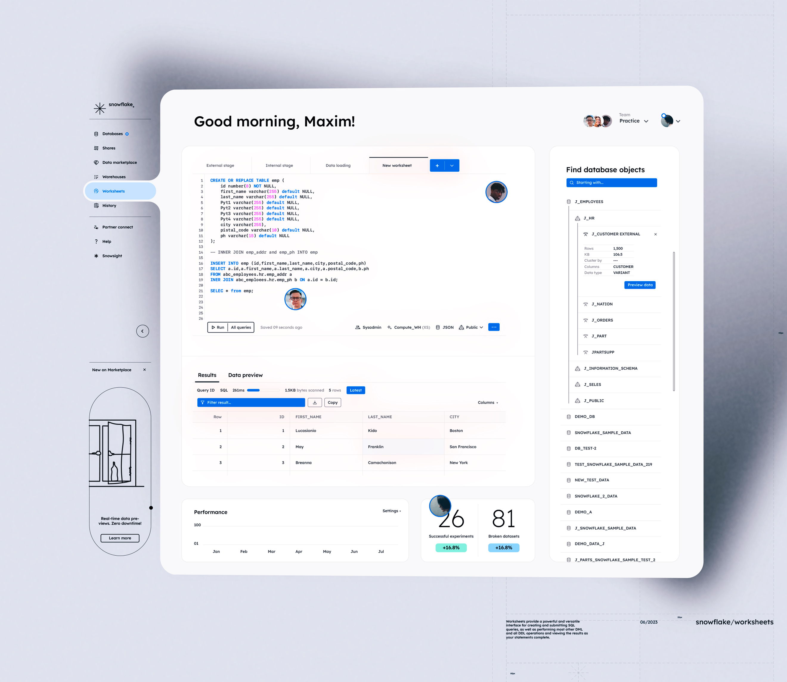 Snowflake enables data storage, processing, and analytic solutions that are faster, easier to use, and far more flexible than traditional offerings.