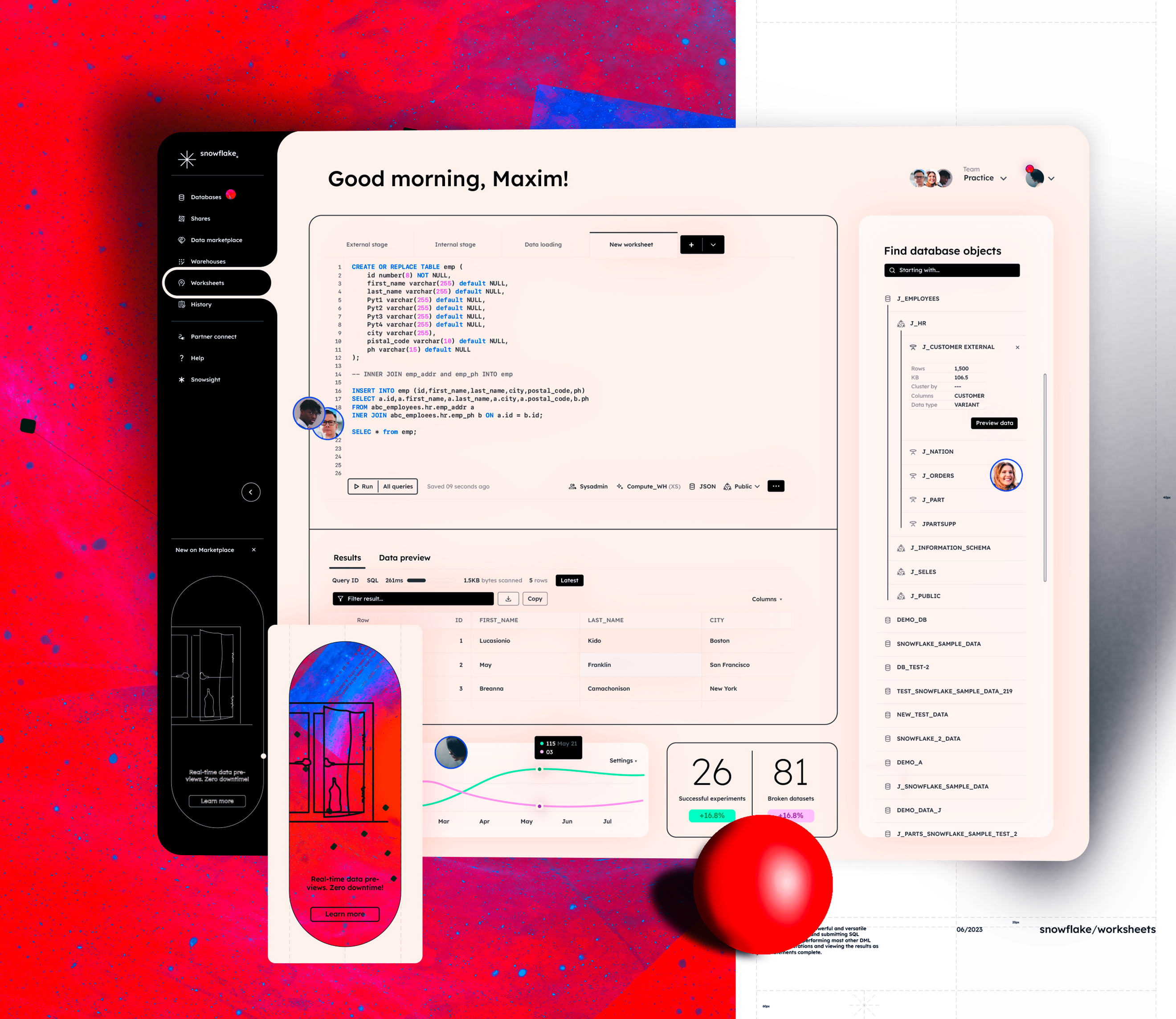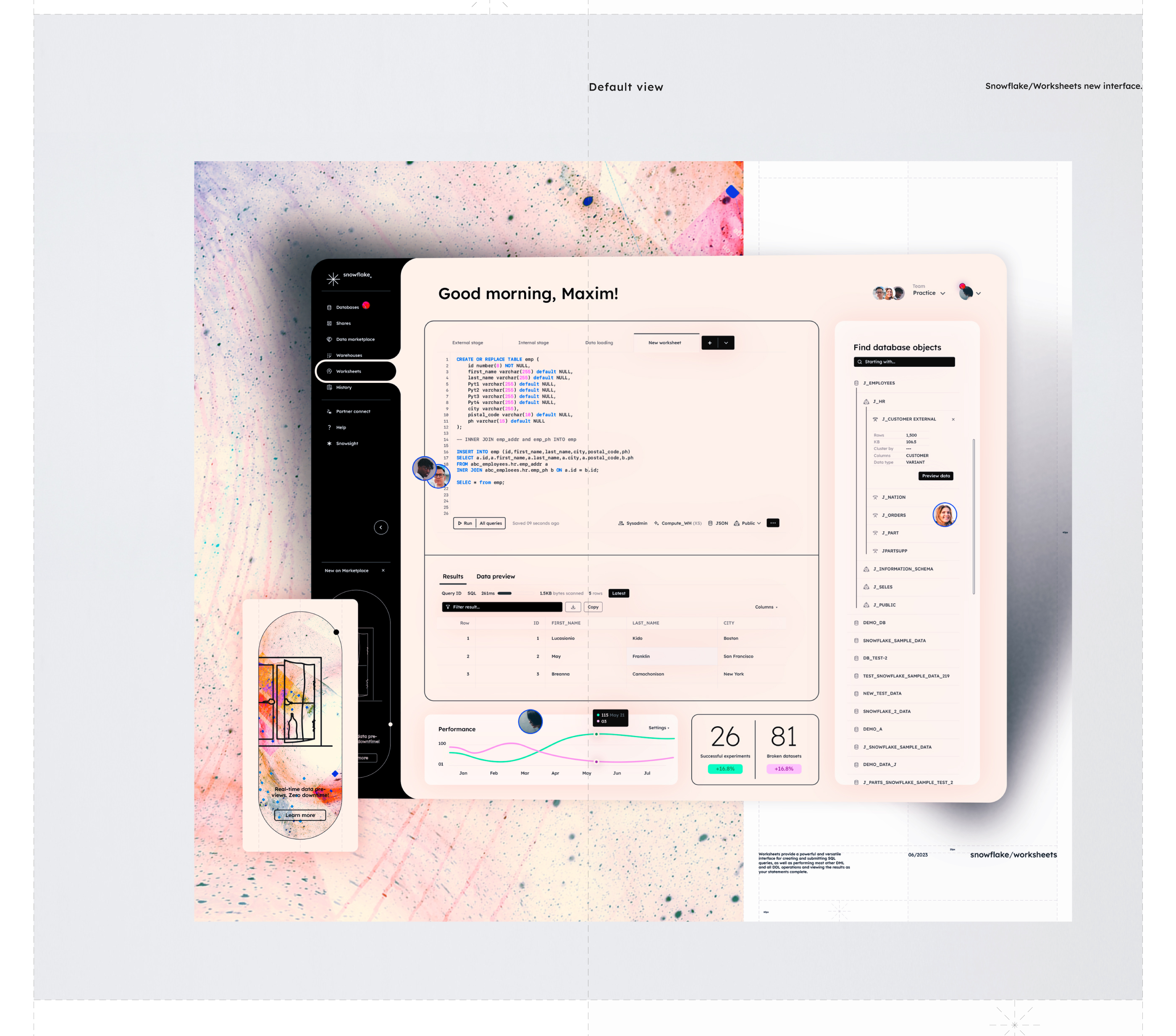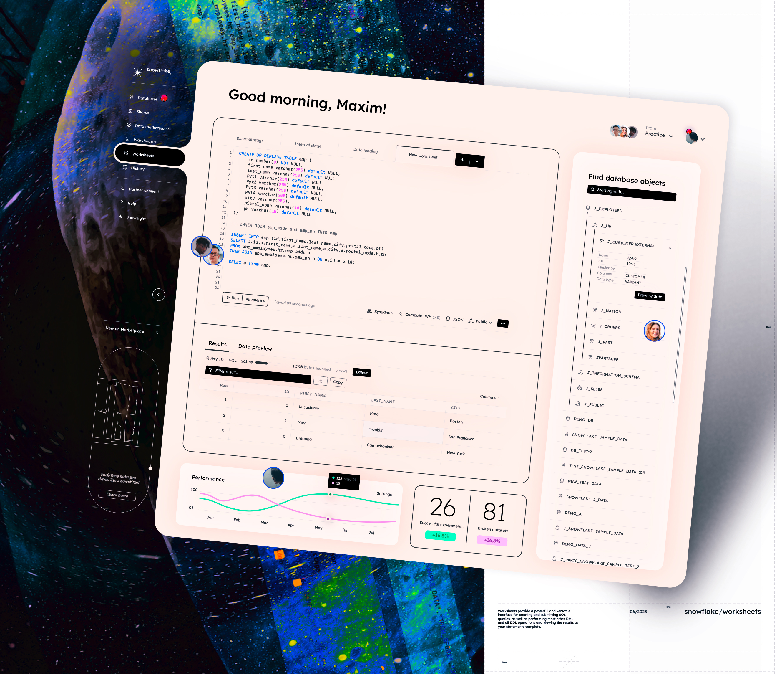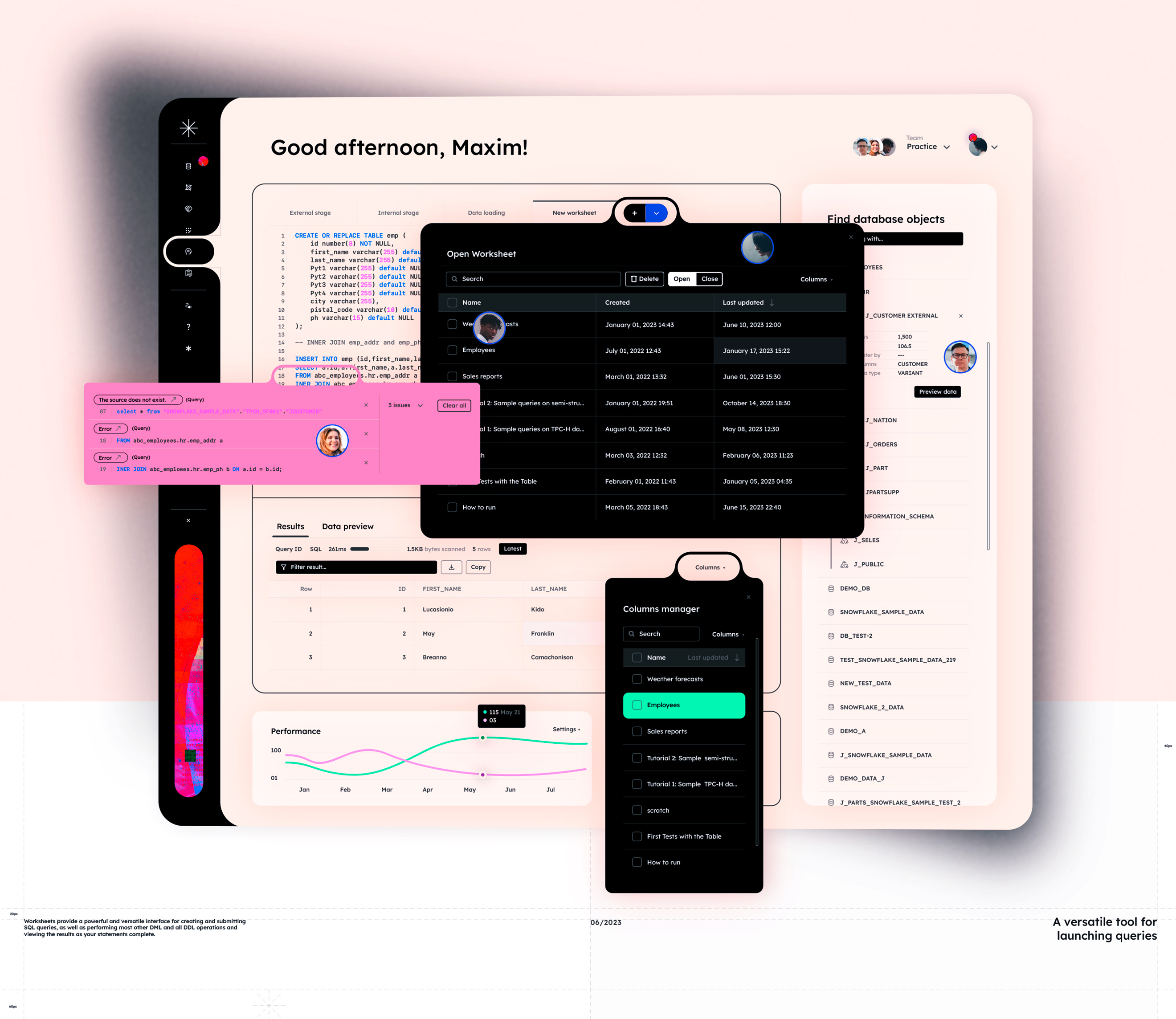 Snowflake enables data storage, processing, and analytic solutions that are faster, easier to use, and far more flexible than traditional offerings.