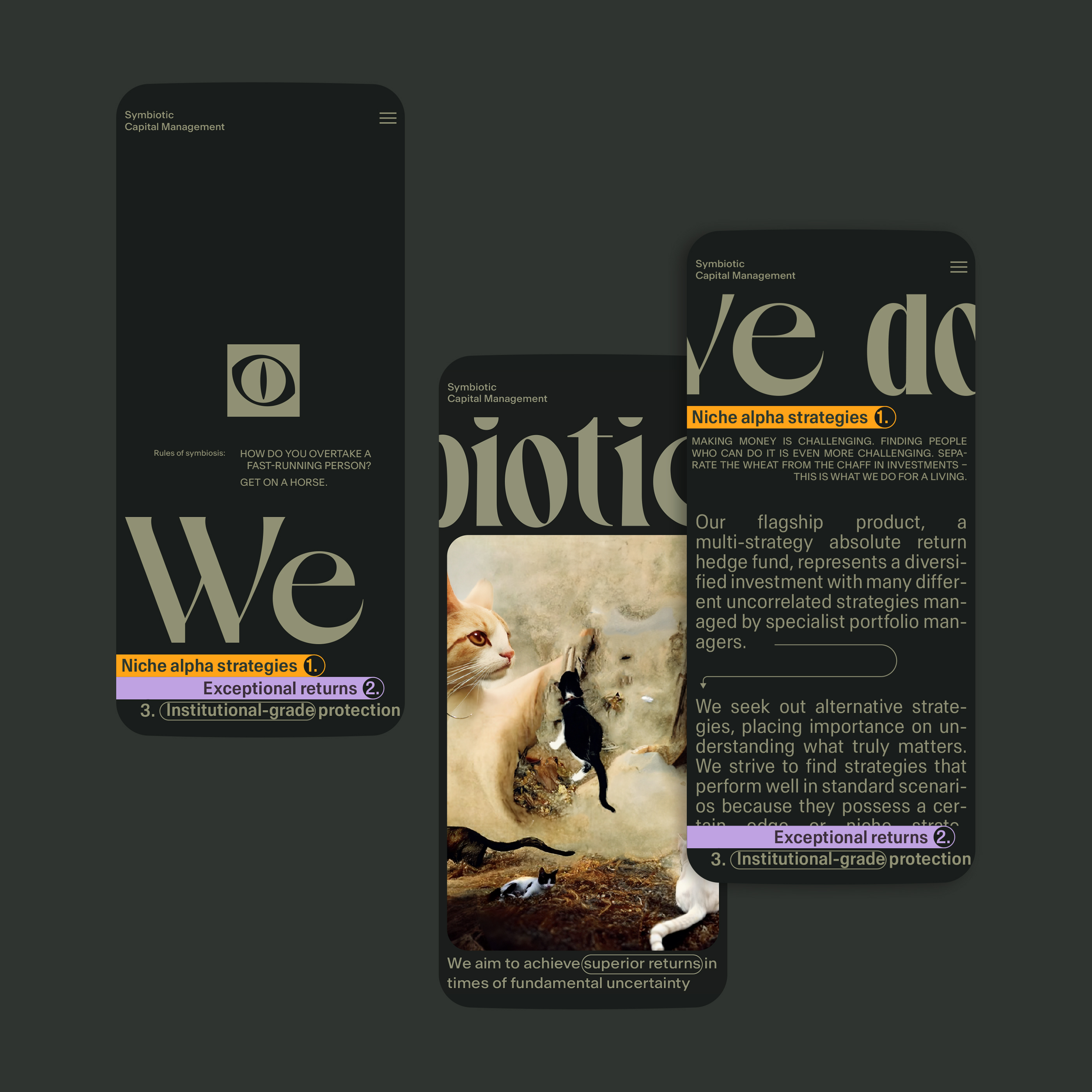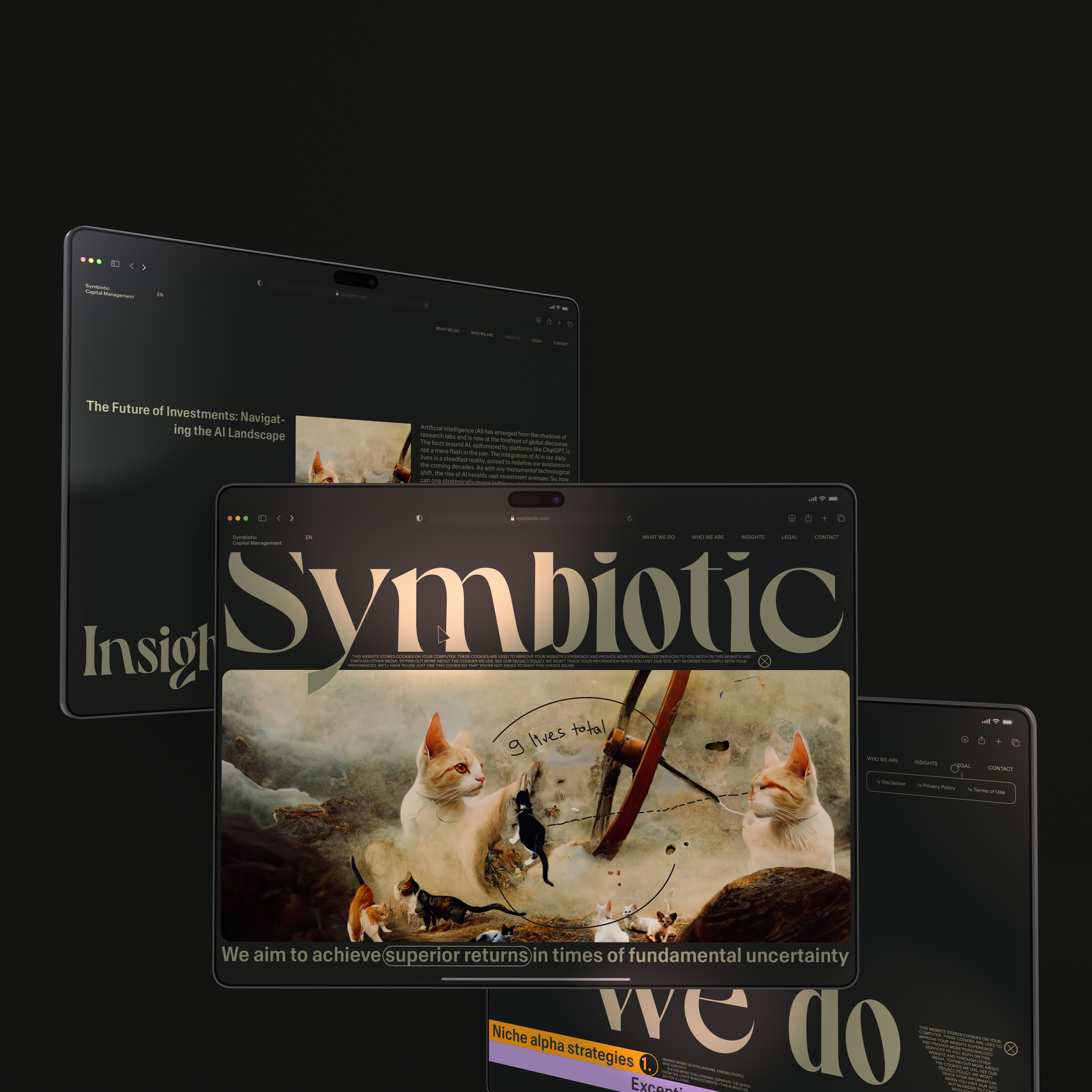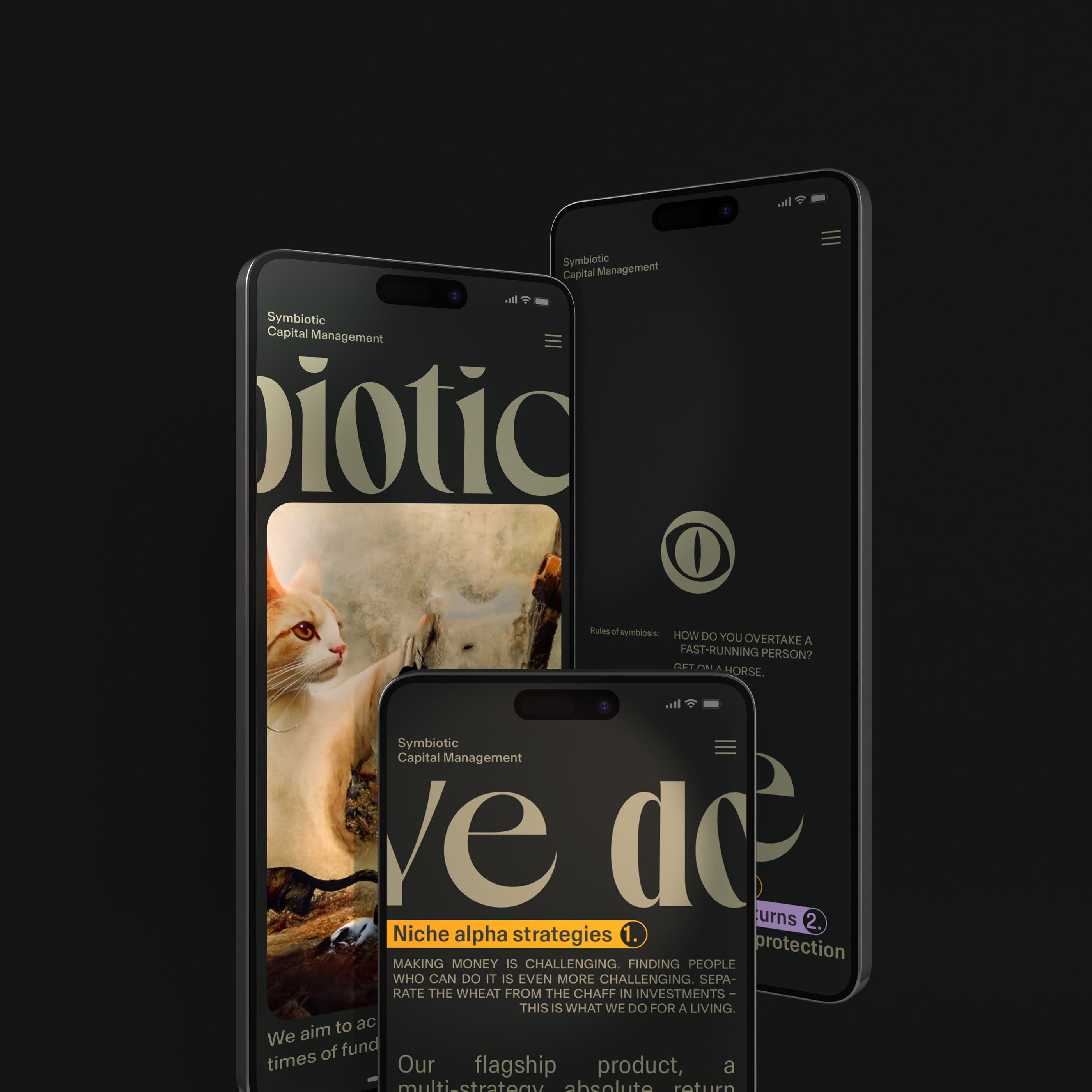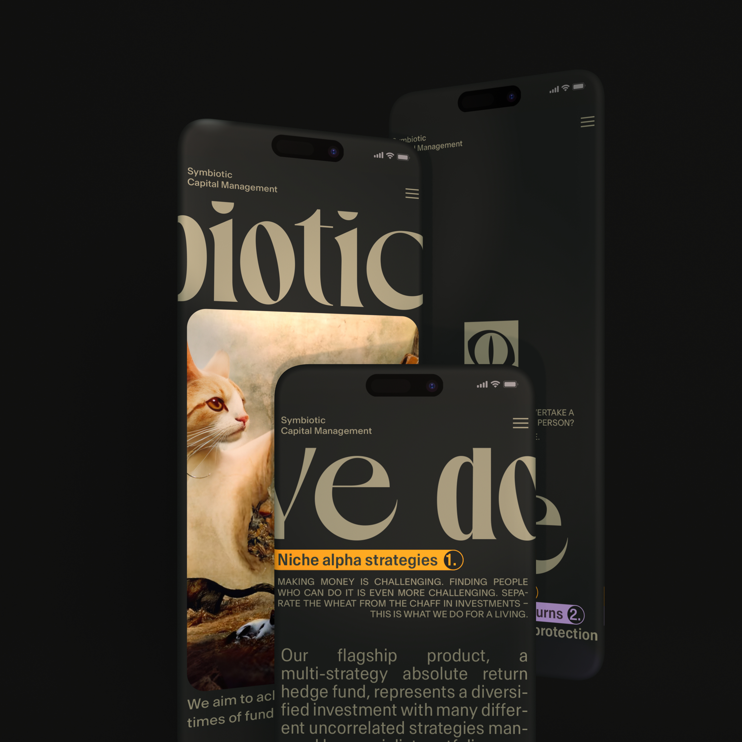 Symbiotic Capital Management thought about creating an identity, website design, and all necessary brand components. Maxim Aginsky designed a dynamic and adaptive system embracing the idiom of the finance field and design, flexible enough to be carried through all touchpoints digital and print.