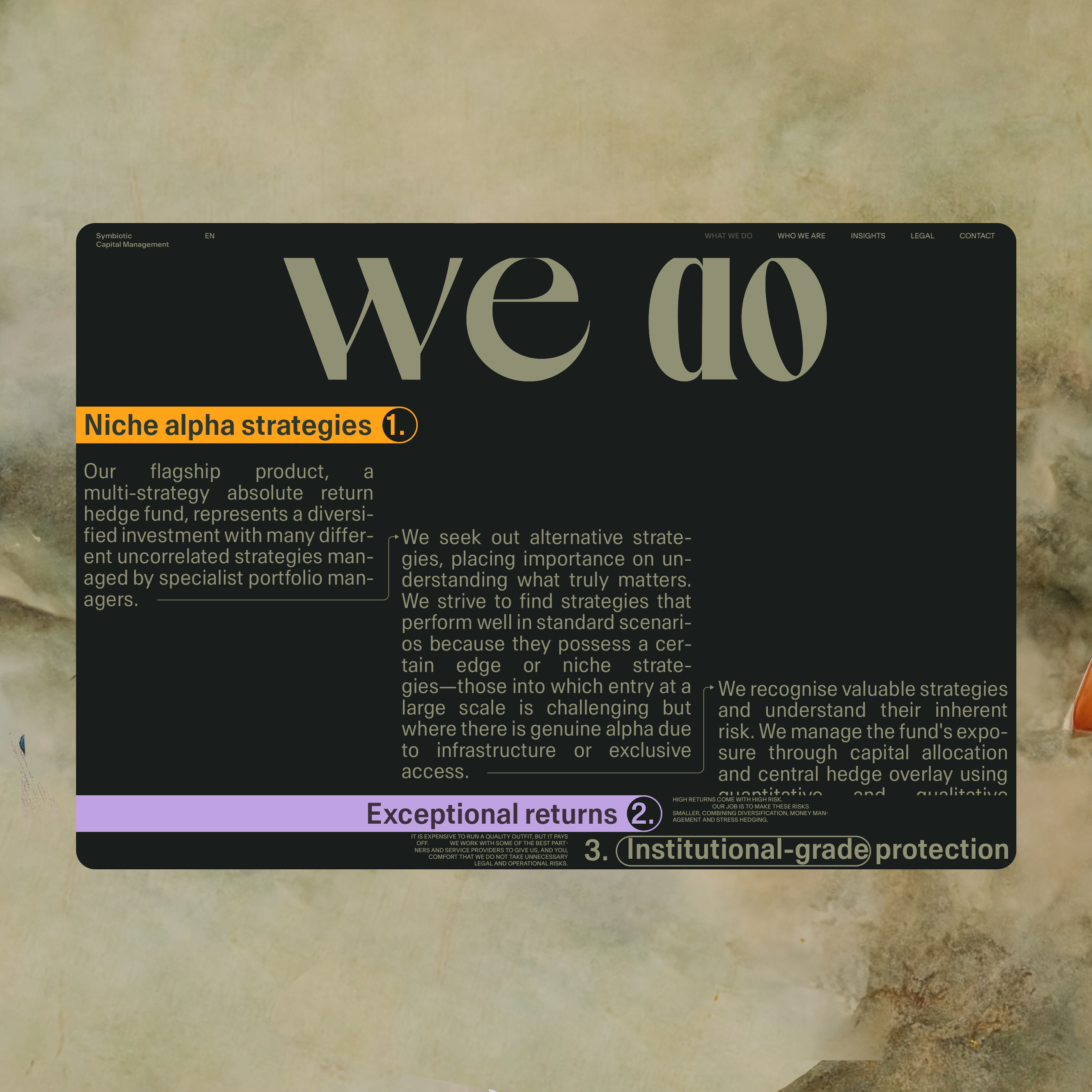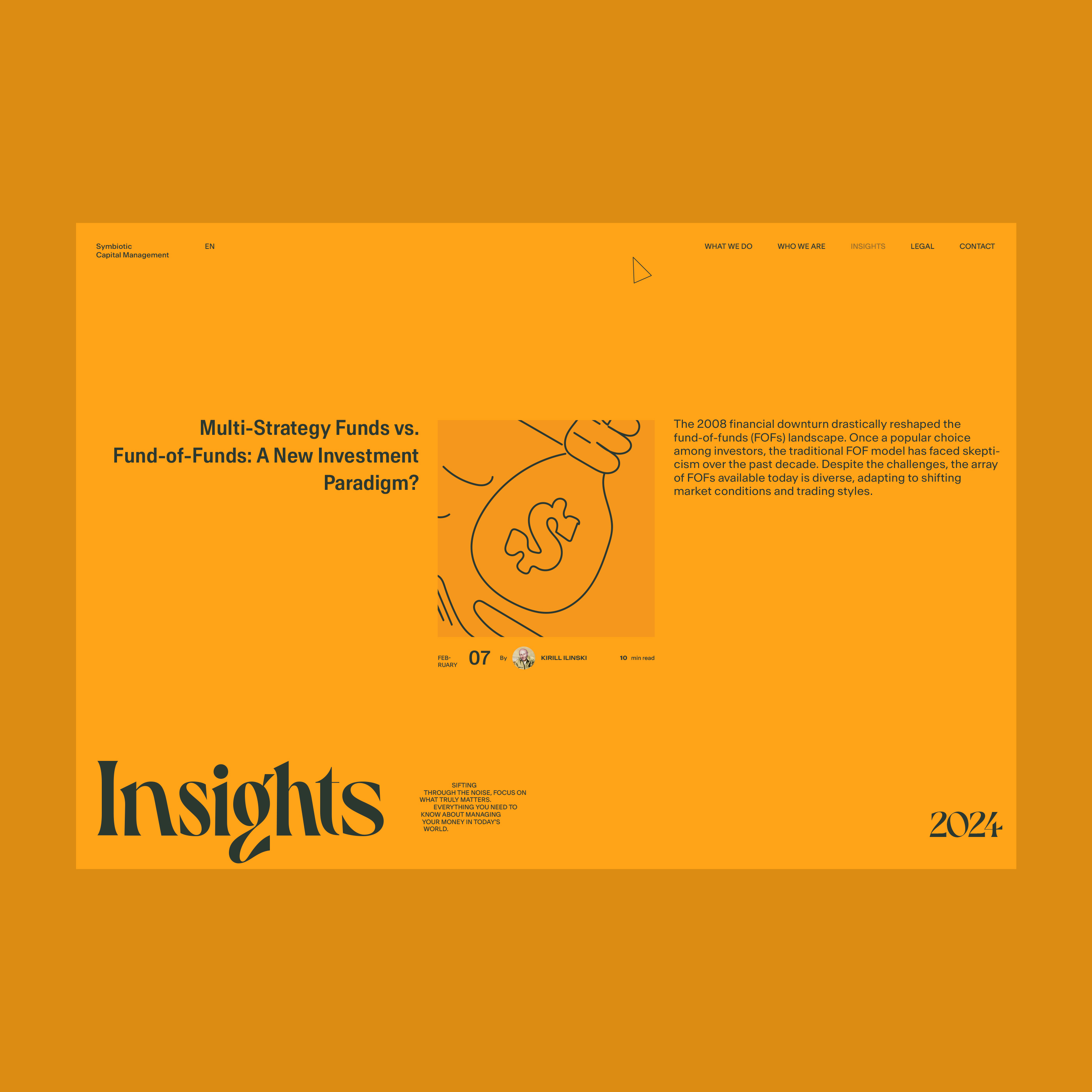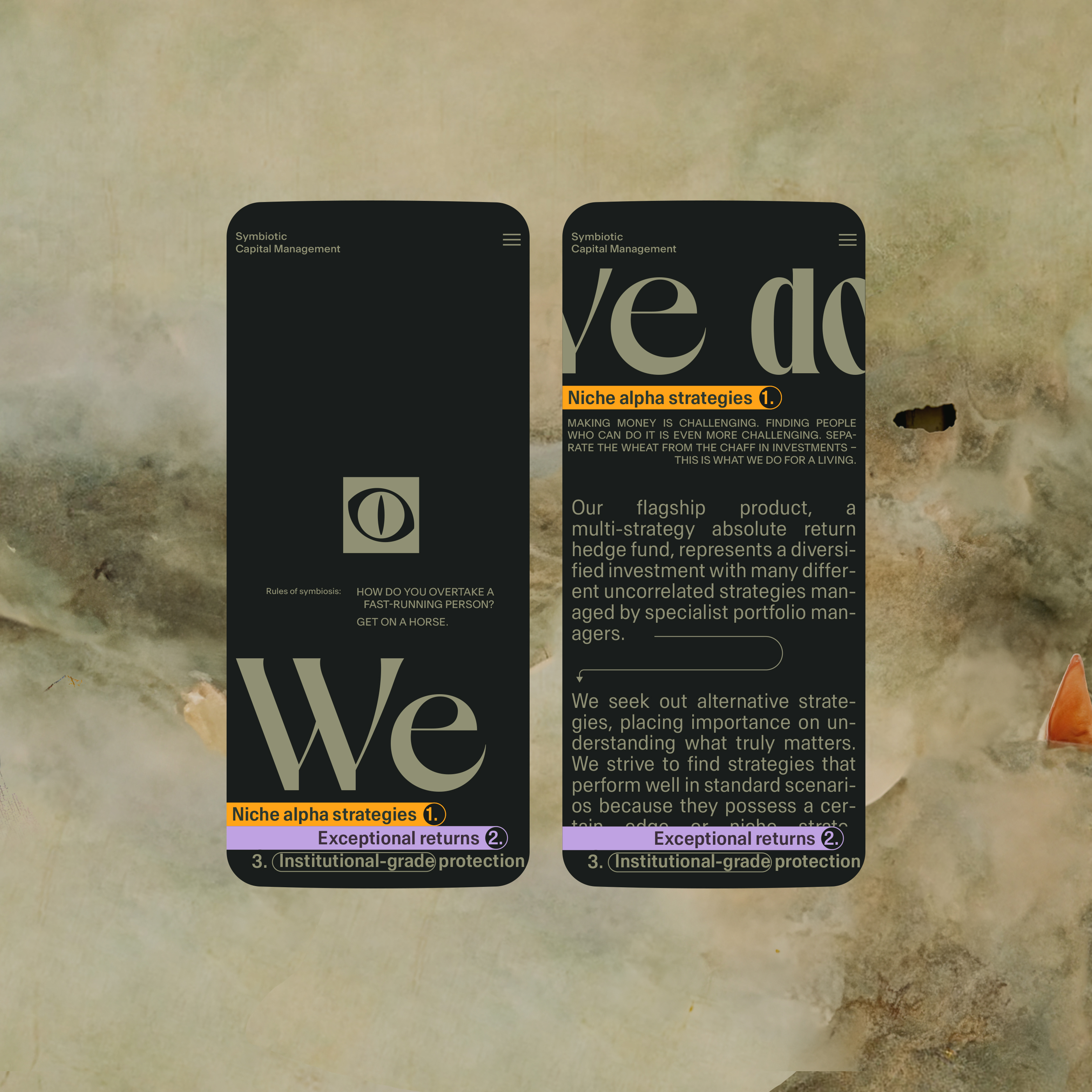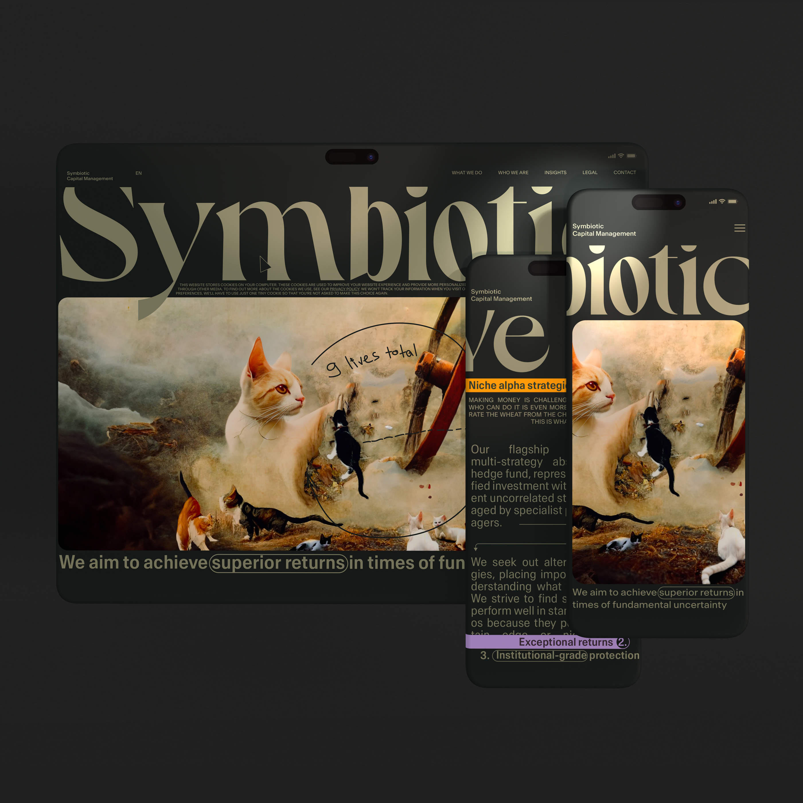 Symbiotic Capital Management thought about creating an identity, website design, and all necessary brand components. Maxim Aginsky designed a dynamic and adaptive system embracing the idiom of the finance field and design, flexible enough to be carried through all touchpoints digital and print.