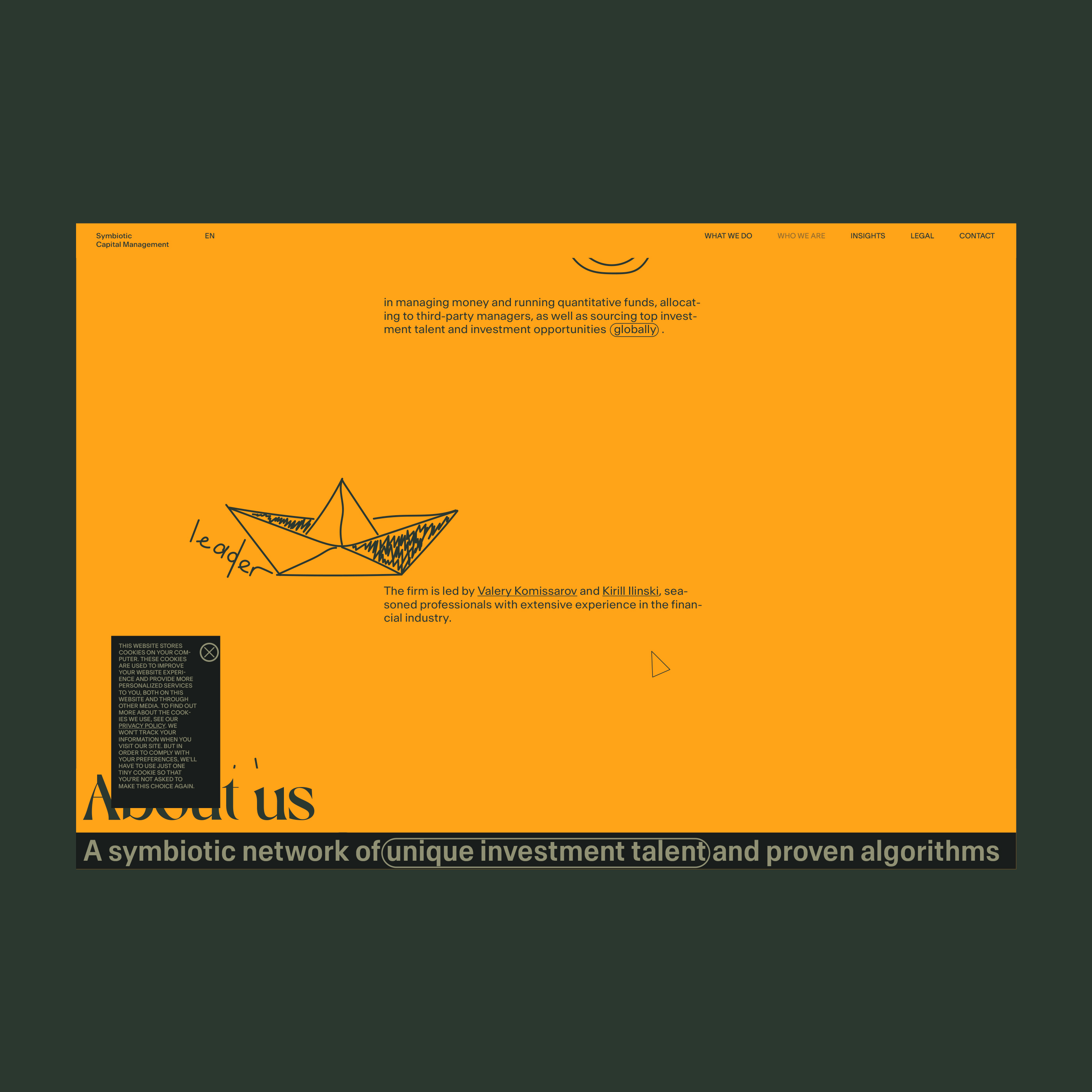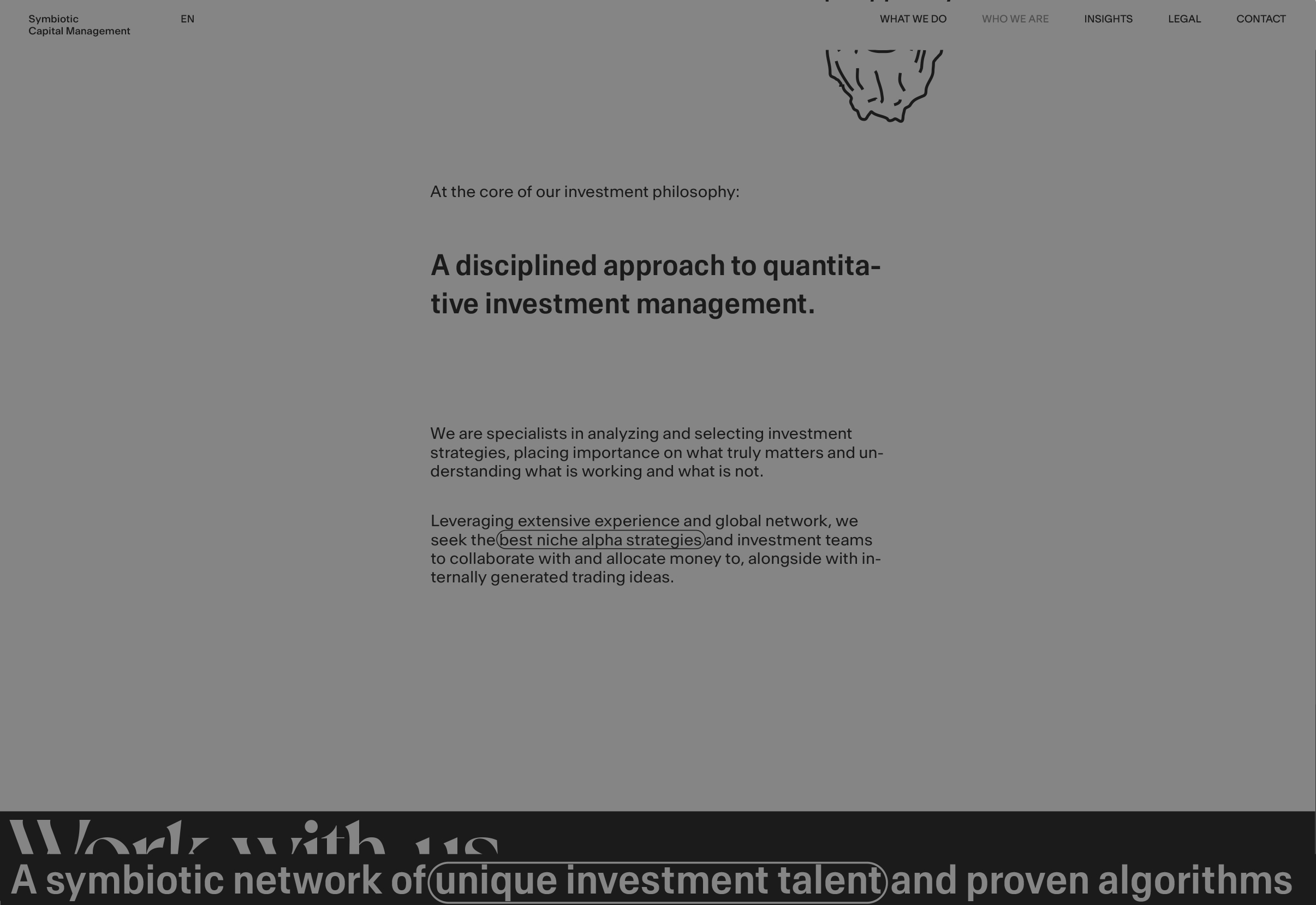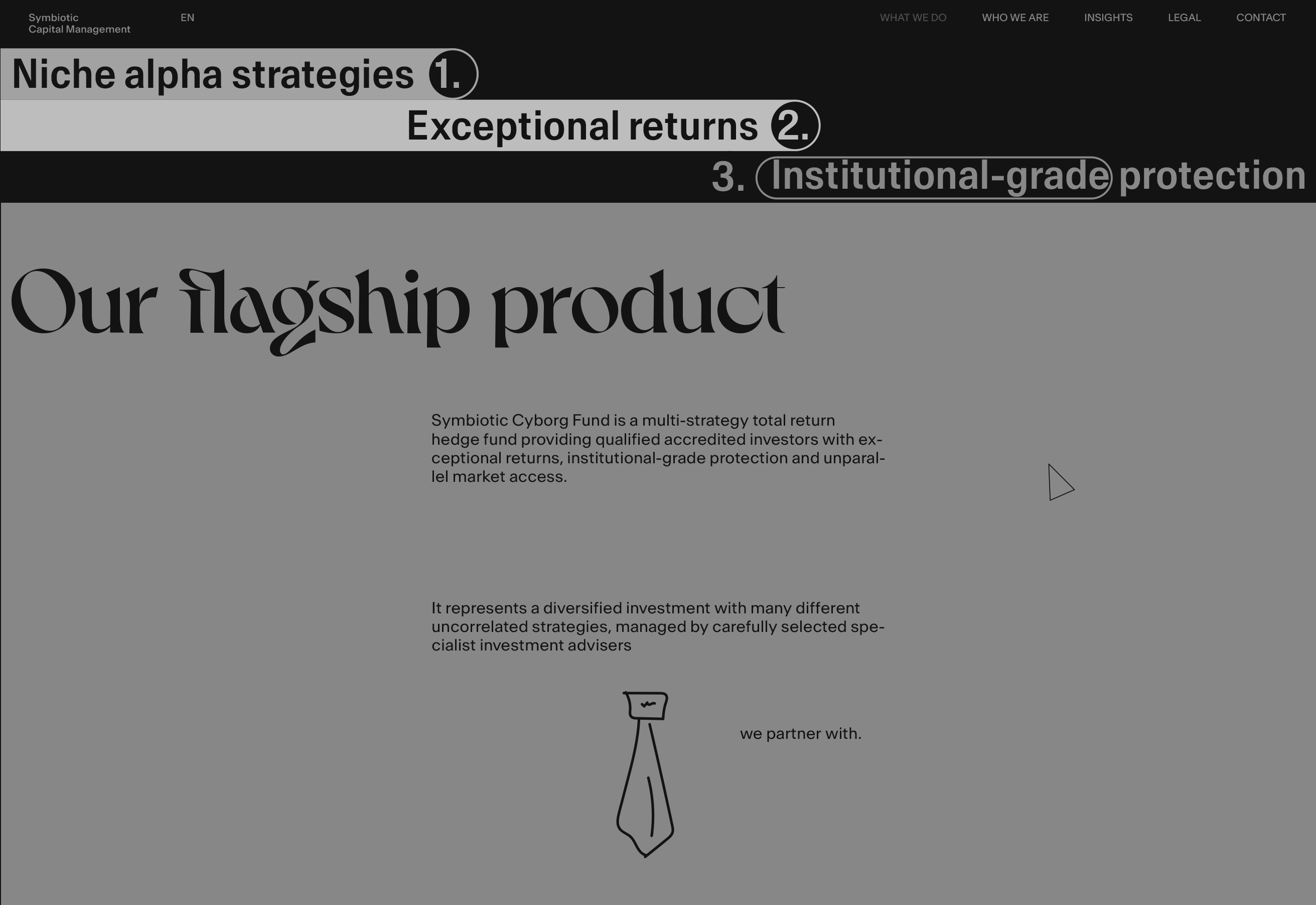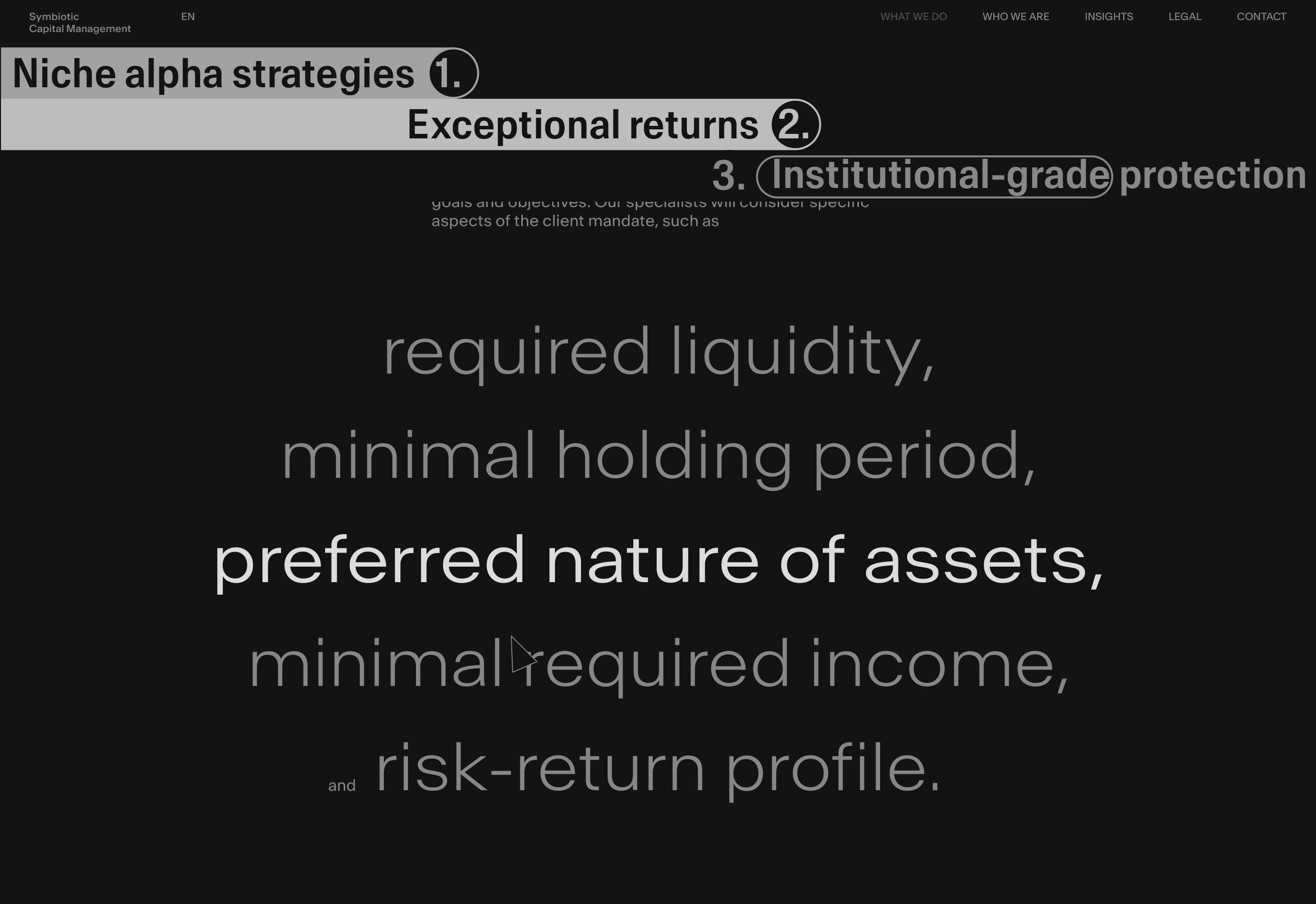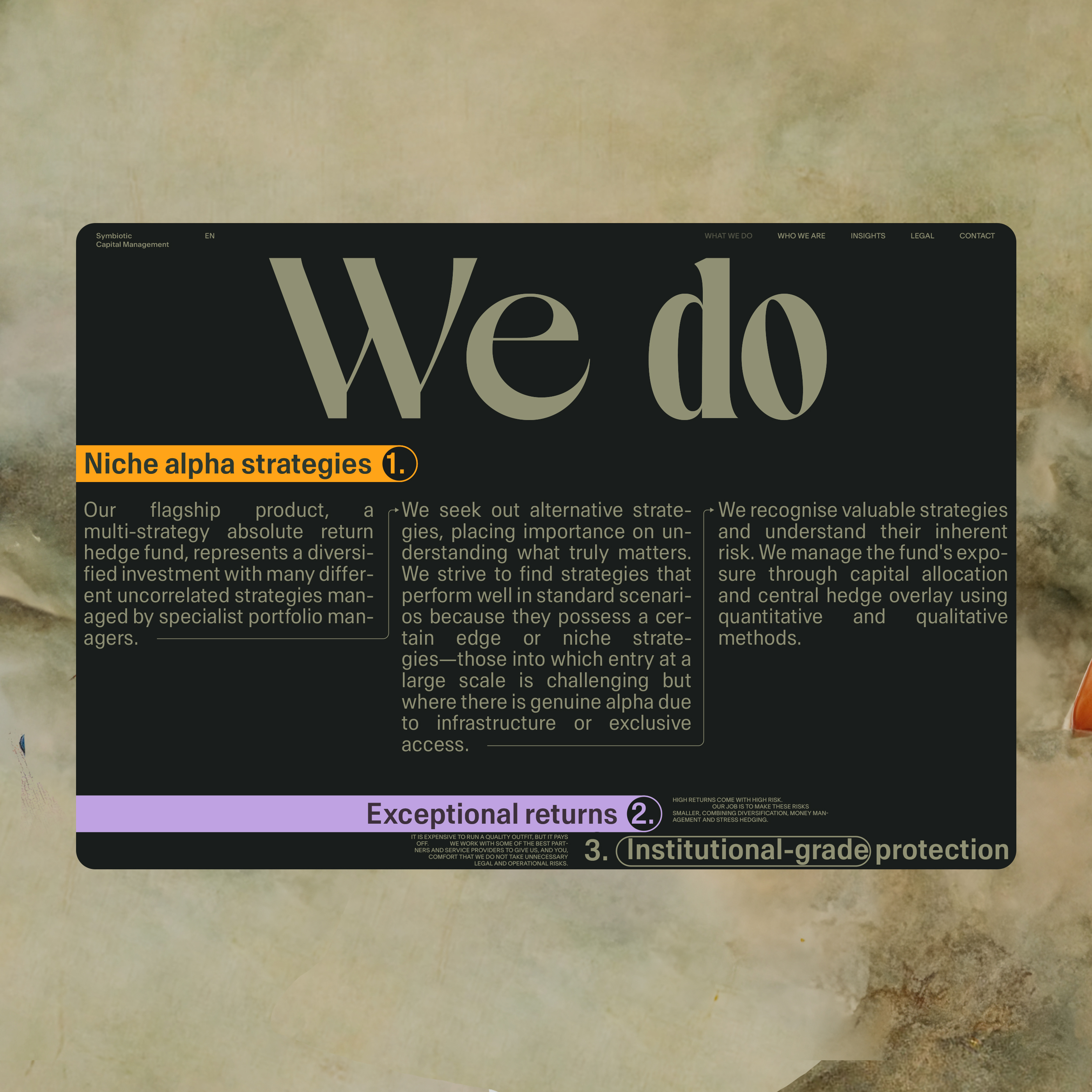Symbiotic Capital Management thought about creating an identity, website design, and all necessary brand components. Maxim Aginsky designed a dynamic and adaptive system embracing the idiom of the finance field and design, flexible enough to be carried through all touchpoints digital and print.