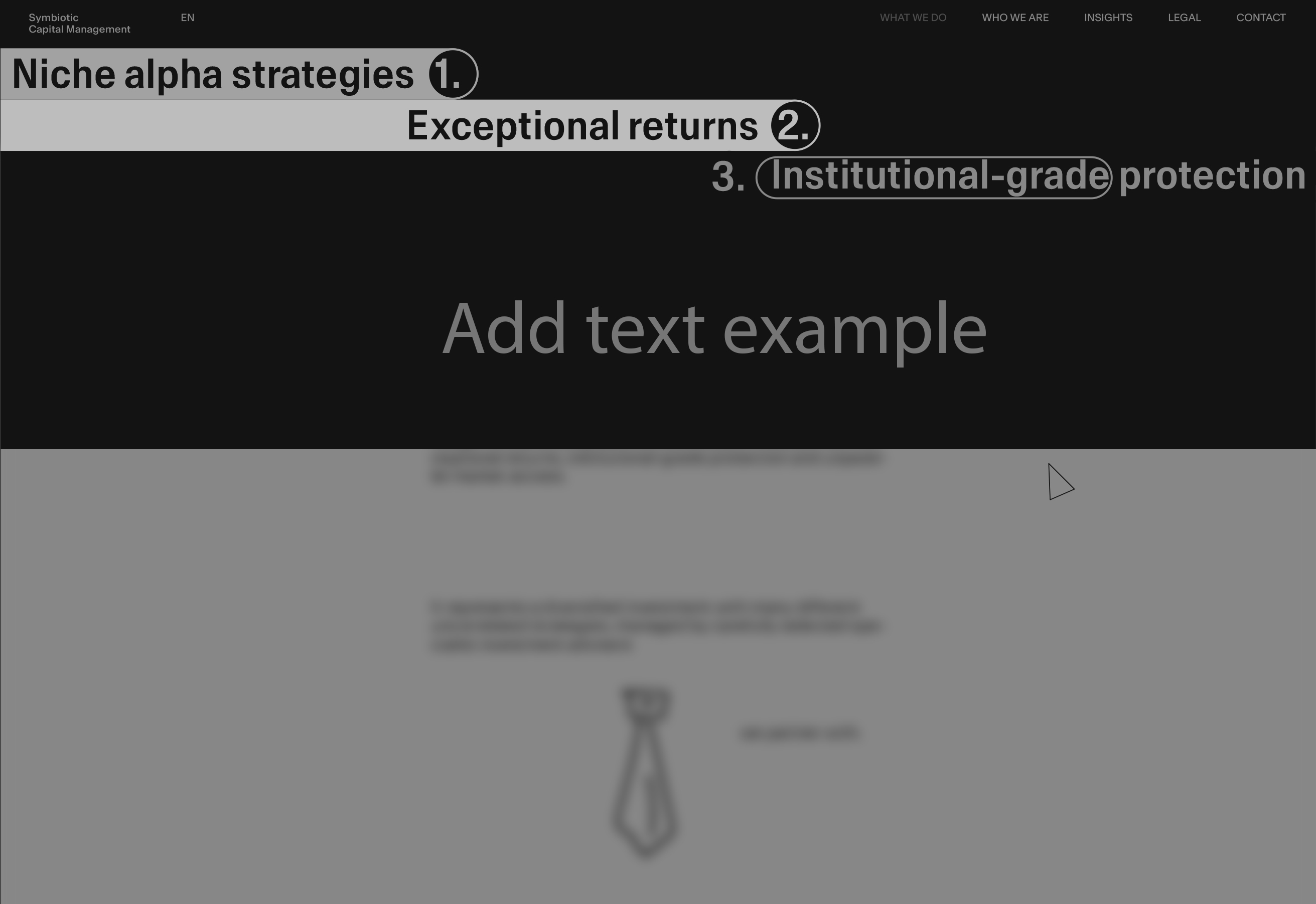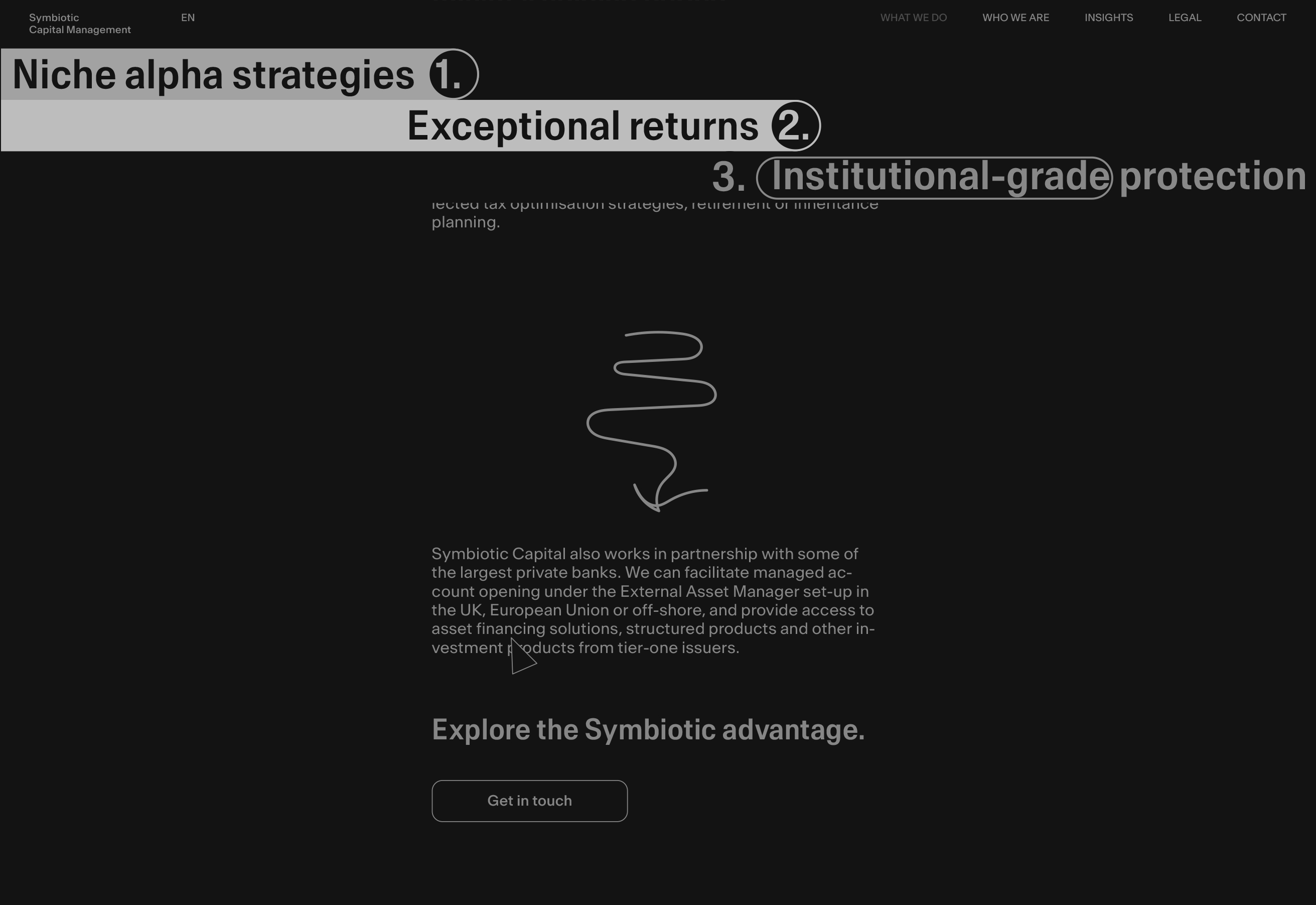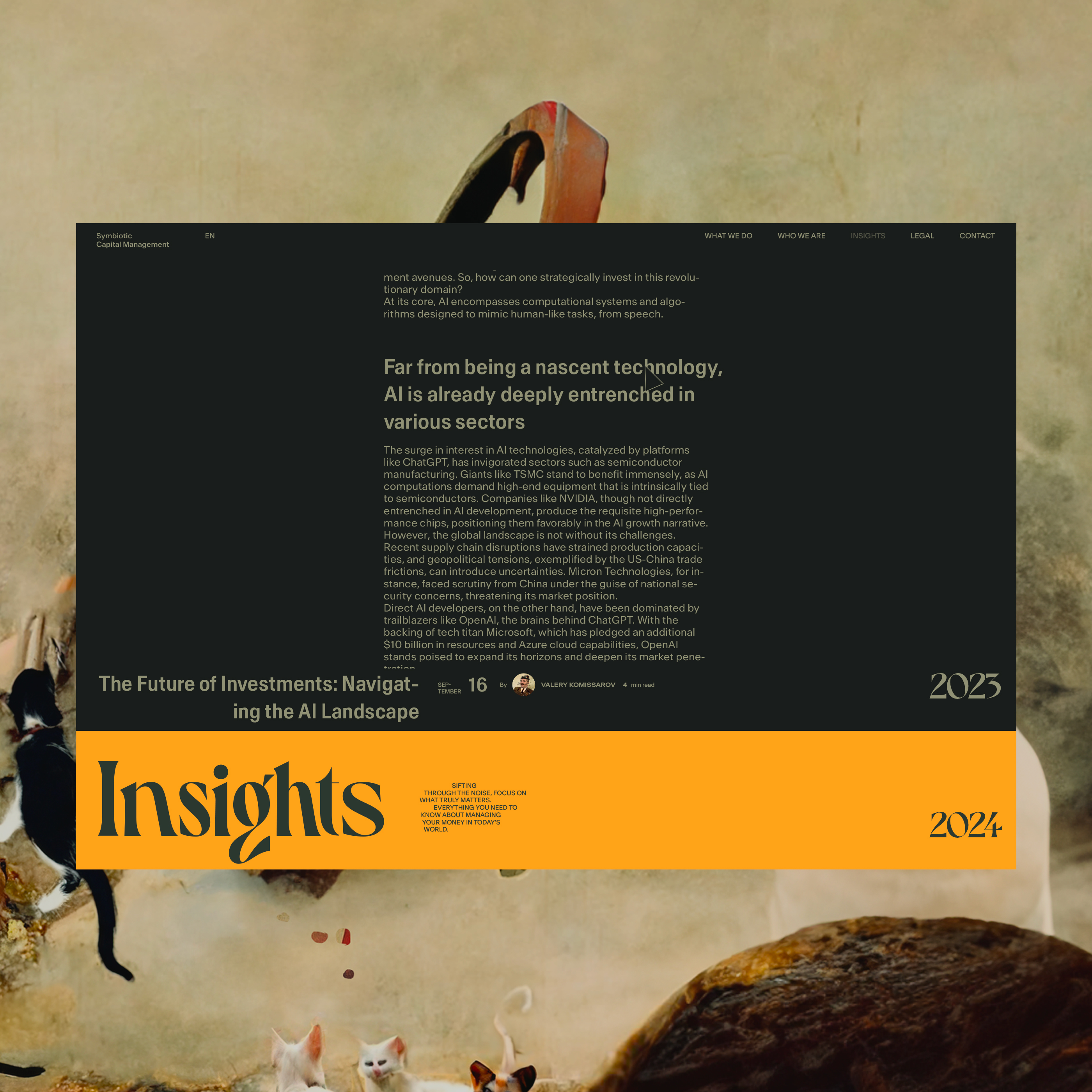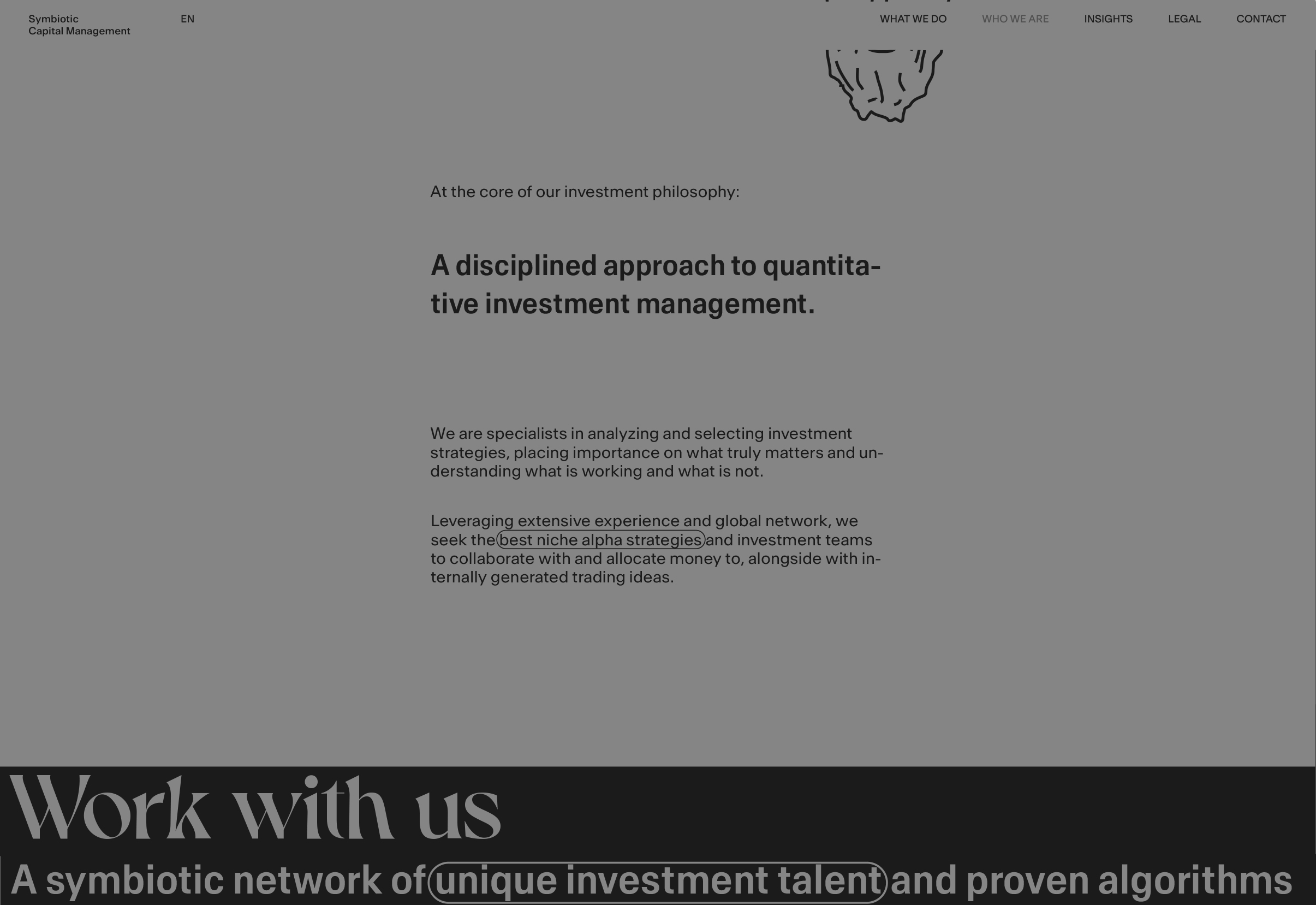 Symbiotic Capital Management thought about creating an identity, website design, and all necessary brand components. Maxim Aginsky designed a dynamic and adaptive system embracing the idiom of the finance field and design, flexible enough to be carried through all touchpoints digital and print.