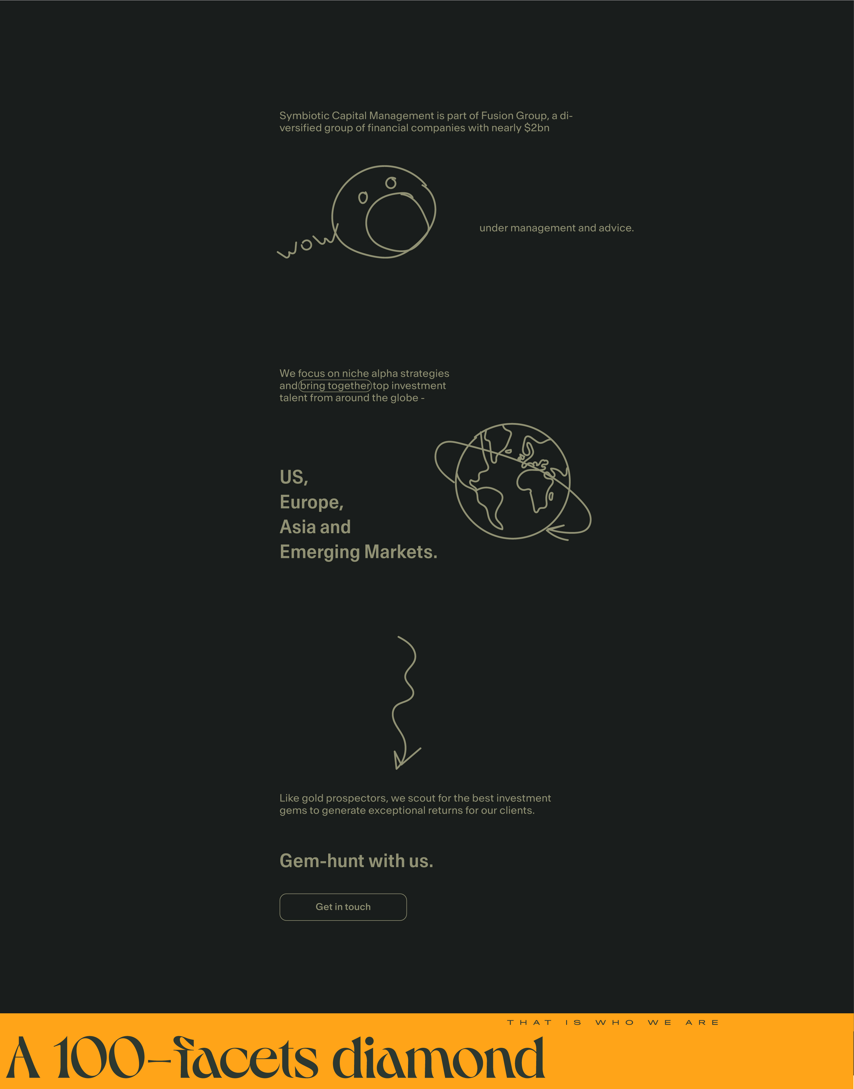 Symbiotic Capital Management is part of Fusion Group, a diversified group of financial companies with nearly $2 billion under management and advice. It focuses on niche alpha strategies and brings together top investment talent from around the globe — US, Europe, Asia, and Emerging Markets. Like gold prospectors, it scouts for the best investment gems to generate exceptional returns for its clients.